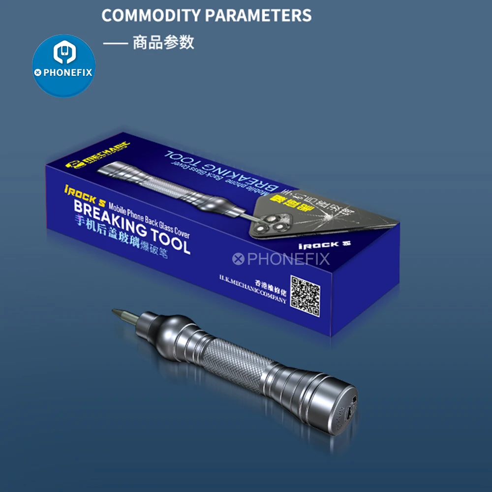 Mechanic iRock 5 boulder iRock glass breaking pen для iPhone X - 11 Pro Max ремонт задних стекол, авто-весенние стеклянные бластеры, ручка для демонтажа стекла на мобильный телефон, ремонт разбитых стекол, сильная мощность, инструменты для выключателя задней стеклянной крышки сотового телефона, Подходит для разборки и ремонта стеклянной задней крышки и модуля сломанных линз мобильных телефонов iPhone / Android.