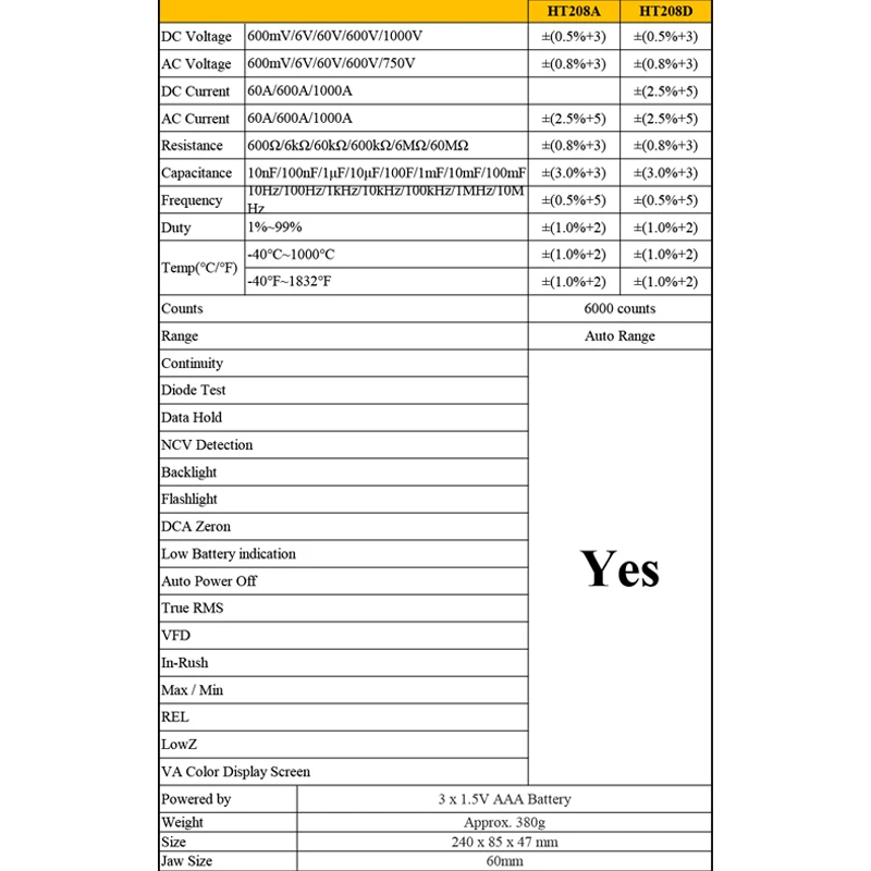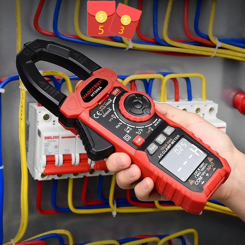 Цифровой мультиметр HABOTEST 208, Токоизмерительные клещи, 6000 отсчетов, True RMS, Токоизмерительные клещи постоянногопеременного тока, вольтметр 1000 В с автоматическим выбором