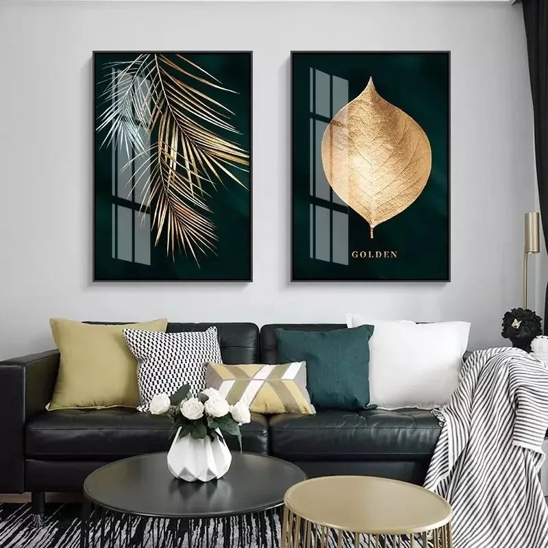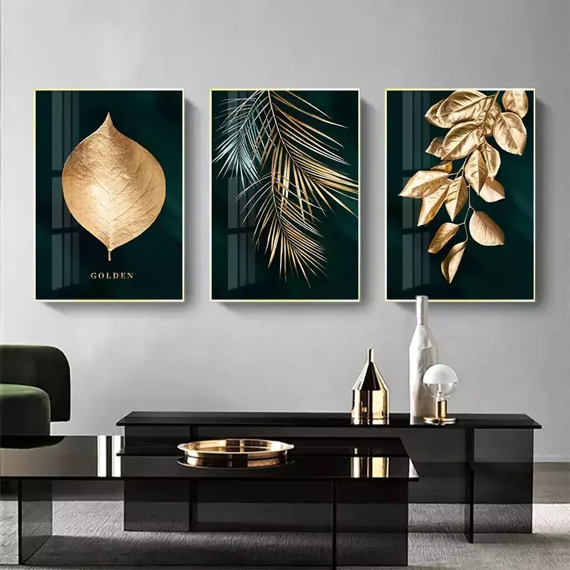 Декор с золотыми листьями для гостиной в скандинавском стиле, роспи...