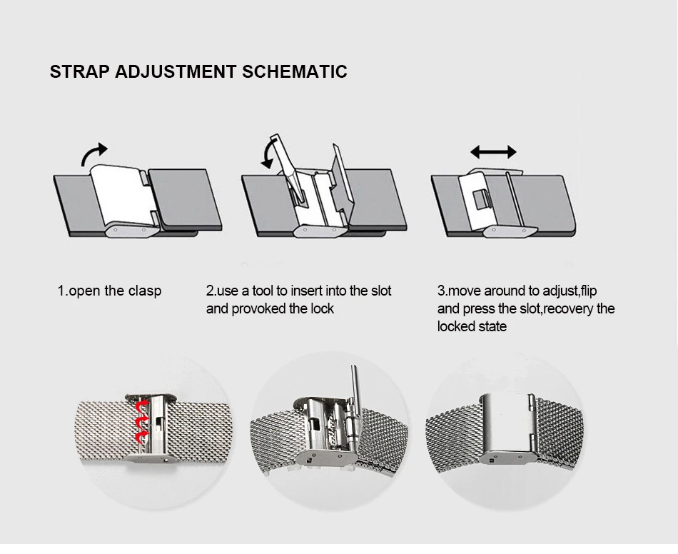 Как отрегулировать размер сетчатый Браслет? Пожалуйста, проверьте ниже: