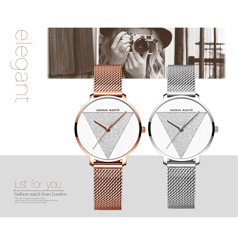 1. Изготовлен из 100% сплава цинка чехол и сетчатый Браслет из нержавеющей стали 2. Цвет: высокое качество IP цвет покрытия с серебром, розовое золото 3. Японский кварцевый механизм 4. Застежка из нержавеющей стали 5. Длина ремешка часов может быть скорректирована, чтобы соответствовать вашему запястью 6. Водонепроницаемость до 3 АТМ 7. Особый треугольный дизайн звездного неба сделает вас выдающимся