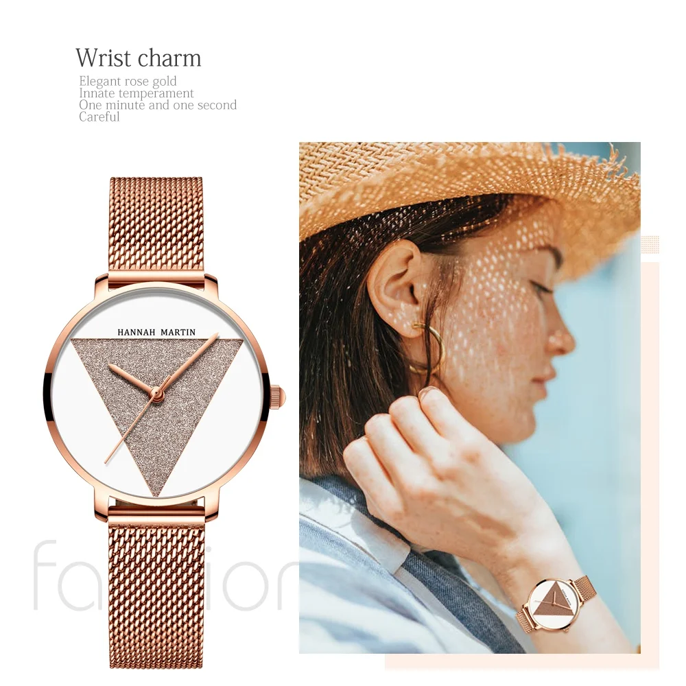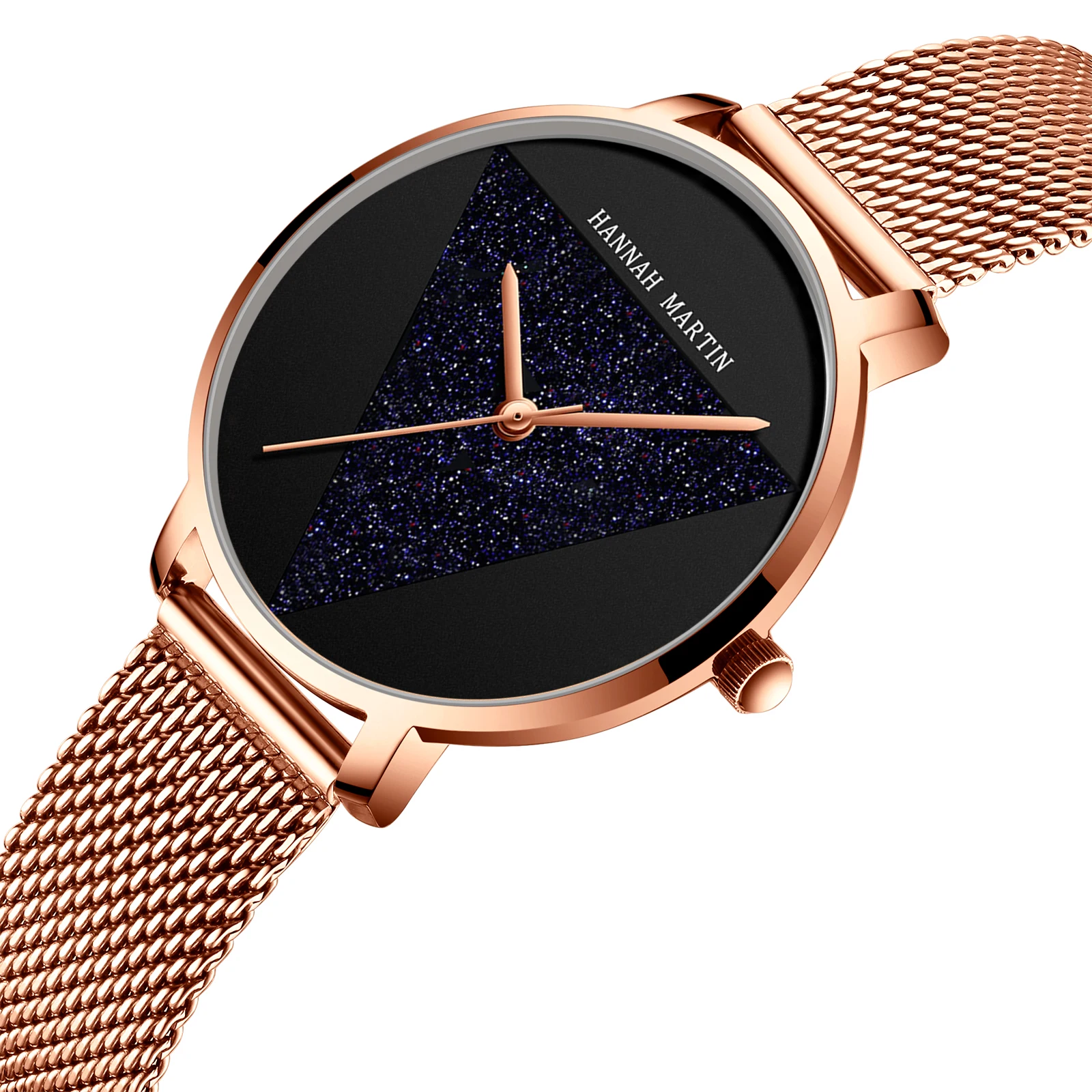 Уникальный треугольный Звездный циферблат дизайн женские роскошные модные повседневные водонепроницаемые японские кварцевые часы женские элегантные наручные часы для девочек
