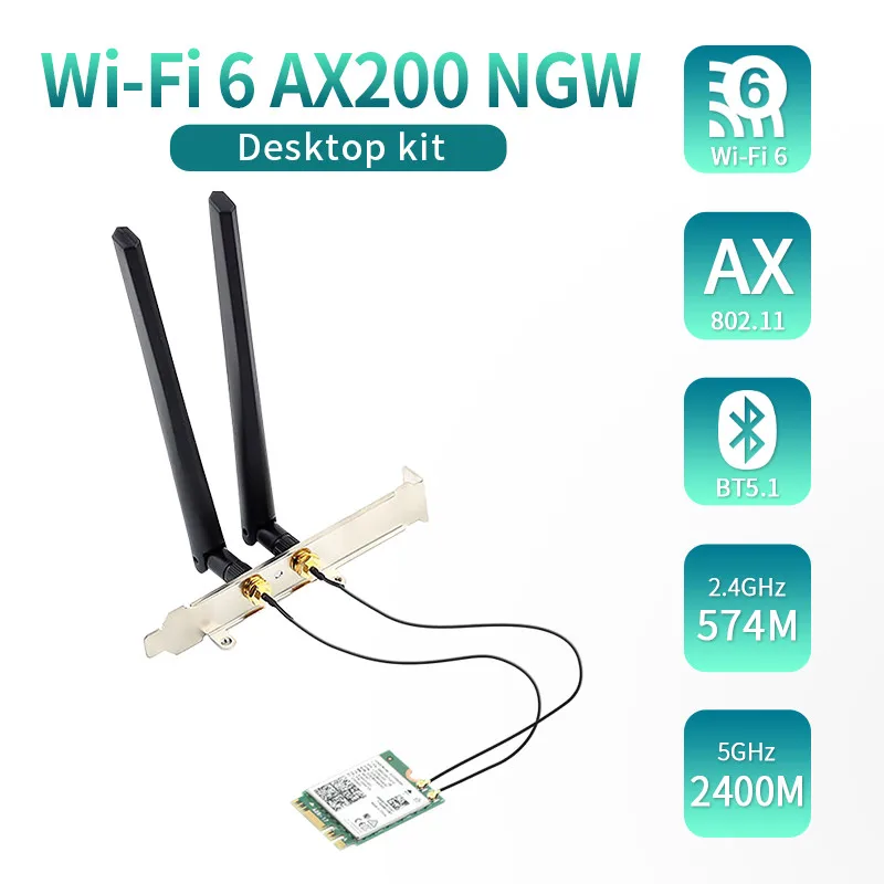 3000 Мбитс Intel AX200 802.11ax Wi-Fi 6 Настольный комплект Bluetooth 5,1 антенна Wi-Fi карта 2,4G5 ГГц беспроводной сетевой адаптер для Win 10