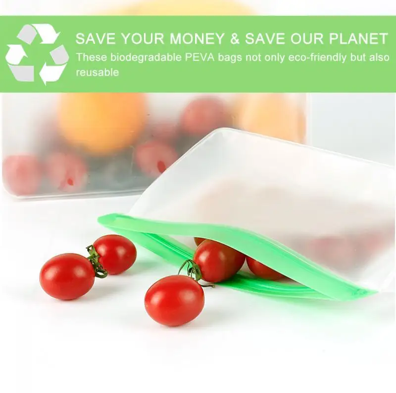 1Pc Reusable Food Storage Bag PEVA Freezer Organizer Silicone Leakproof Top Zip Lock Bags Kitchen Organizer Fresh-keeping Bag