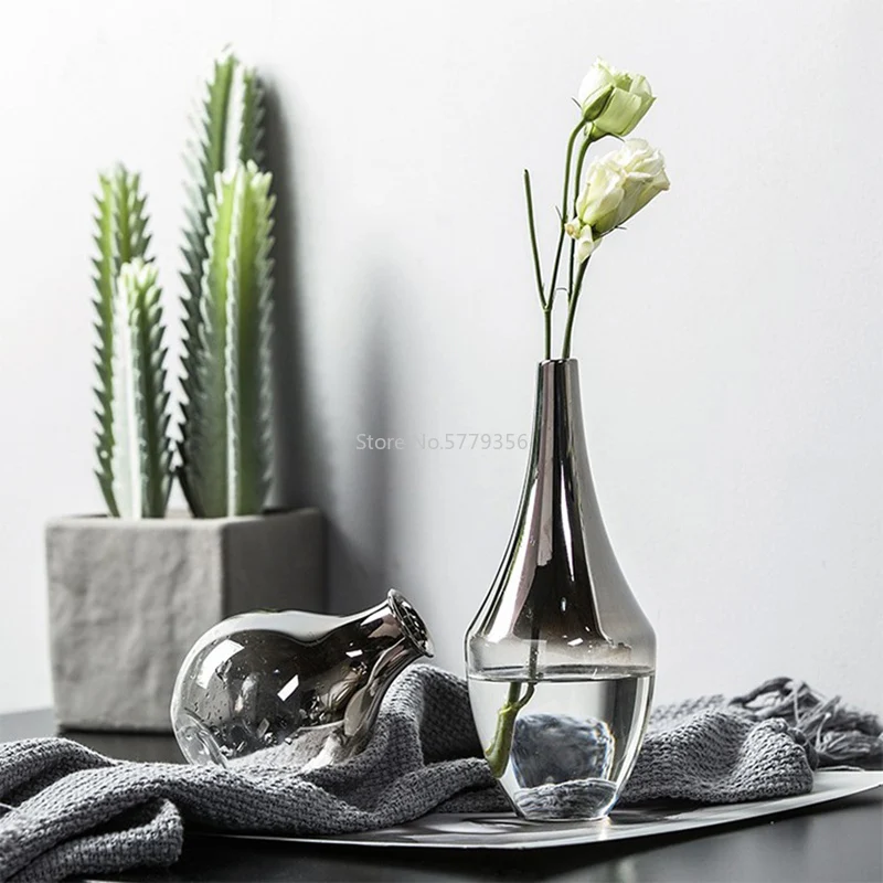 Стеклянная ваза для цветов в скандинавском стиле, серебряная градиентная засушенная вставка, Настольная декоративная подставка для растений украшения для террариума