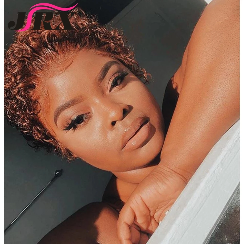 Имбирь, короткая стрижка, кружево парики Короткие вьющиеся боб парики из натуральных волос для черный Для Женщин Бразильские натуральные волосы Remy часть синтетические волосы парики шнурка