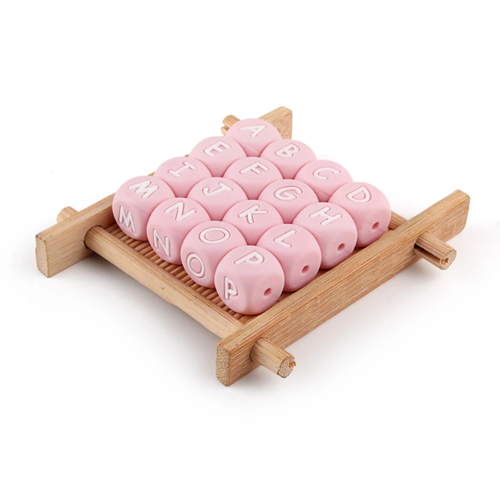 10 шт., розовые силиконовые бусины с буквами, 12 мм, без бисфенола А, для прорезывания зубов, персонализированное имя «сделай сам», грызунок, жевание, Английский алфавит детские бусы