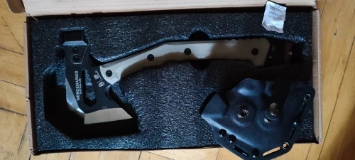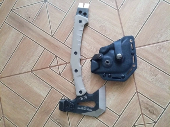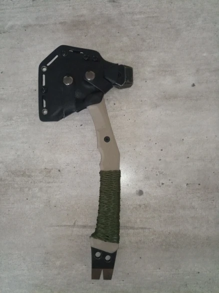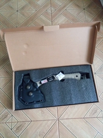 Выглядит основательно. Именно такой и ожидал. Доставка из РФ - очень быстро. Топорик из коробки бреет. В деле не пробовал. Покупал не для дрова колоть. Больше интересует как мультиинструмент. Толщина металла на рукояти 5 мм. Интересно, насколько он будет хорош в качестве ломика. Хват при работе ломом не такой удобный, как у Gerber Downrange Tomahawk, но и цена в разы ниже. Кстати, купил за 3 372,06₽ с бесплатной доставкой. Чехол и крепление надёжные. Есть ещё вариант меньшего размера и немного другой конструкции. Посмотрев на полученный топор, думаю, что уменьшенный вариант будет ни о чём, скорее приятная бирюлька, в руках повертеть.