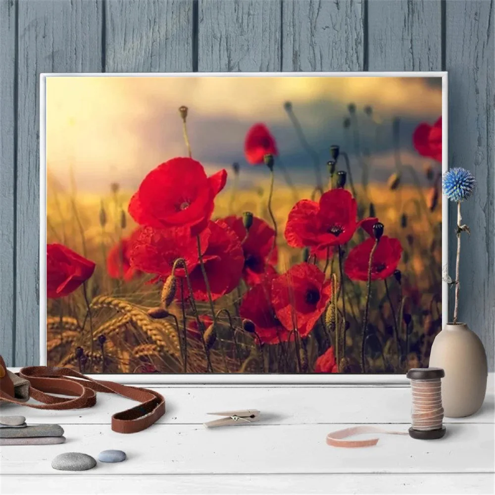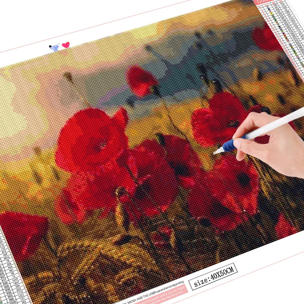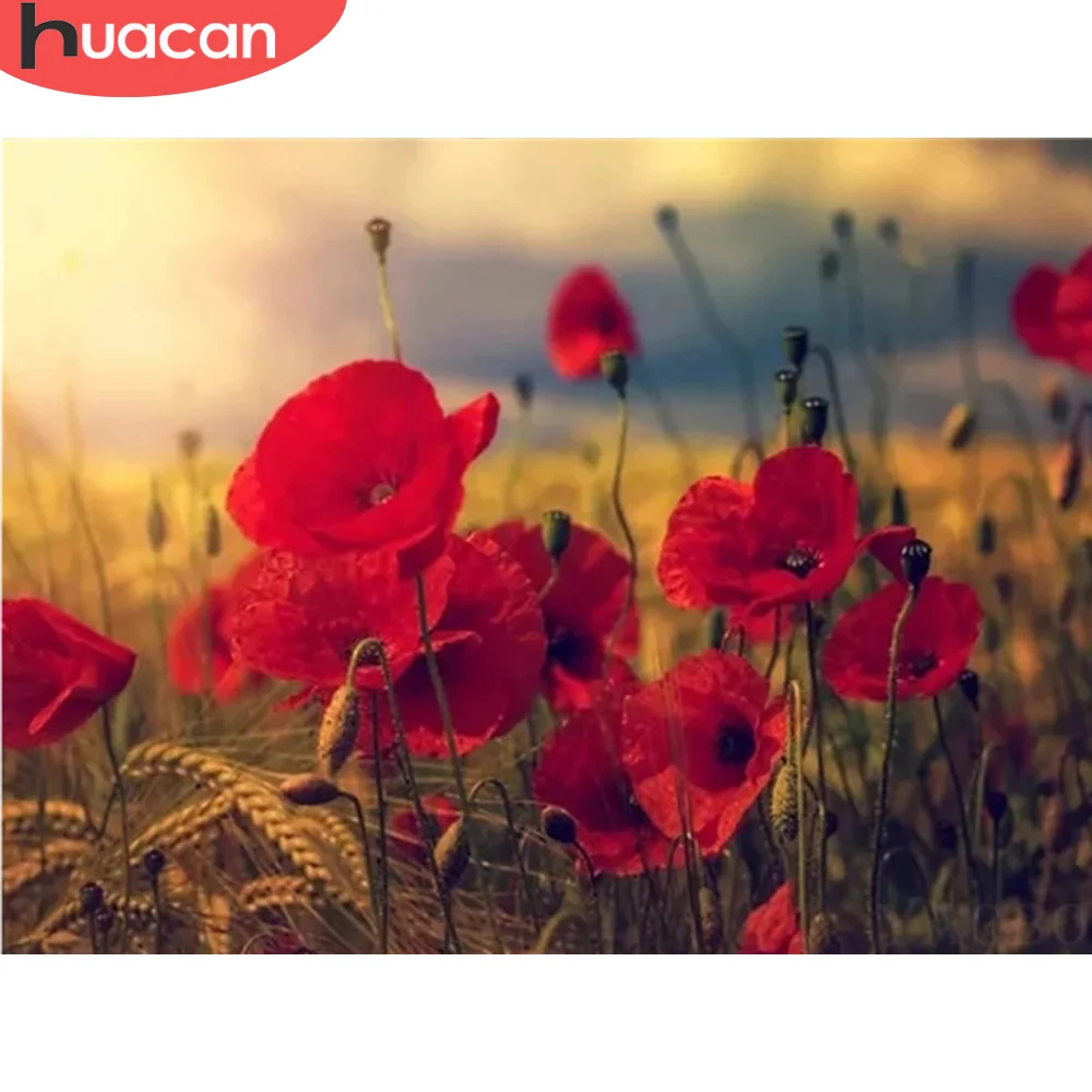 Алмазная 5D картина HUACAN, полноразмерная круглая картина с маковым цветком, вышивка, Цветочная мозаика, вышивка крестиком, настенное искусство
