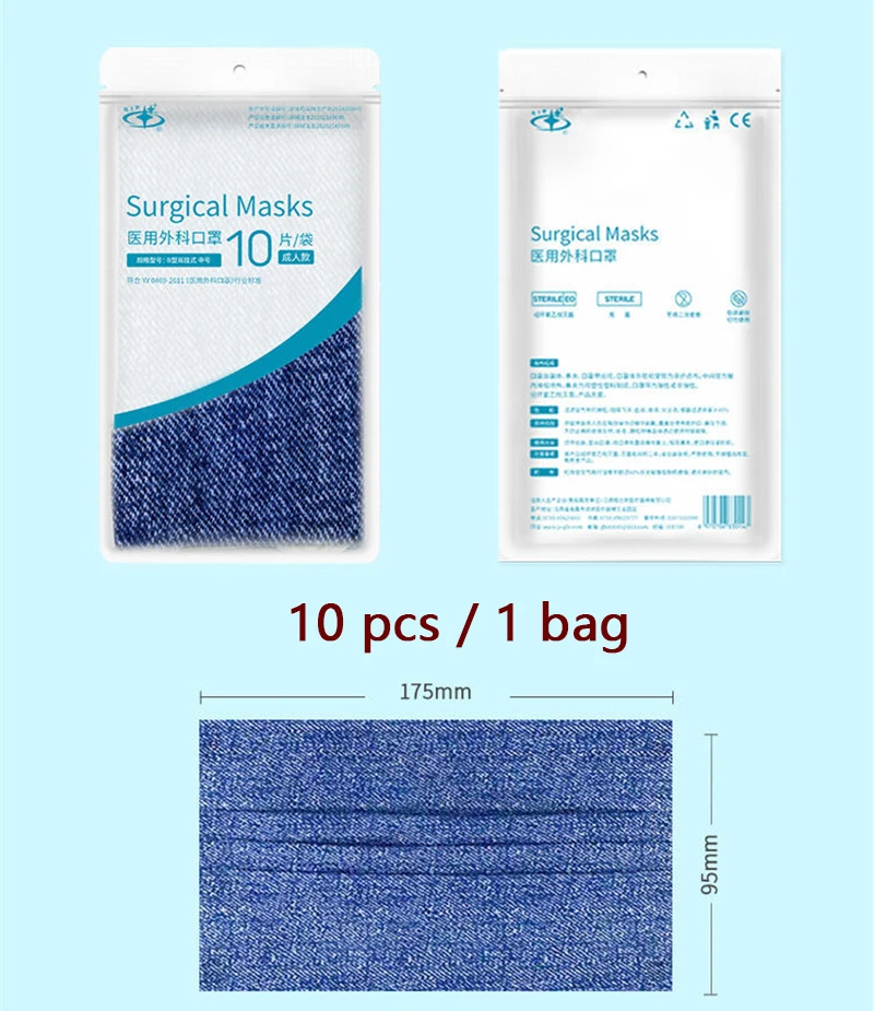 Одноразовая медицинская маска, 3 слоя дышащей джинсовой маски со ртом для лица, 10-100 шт.