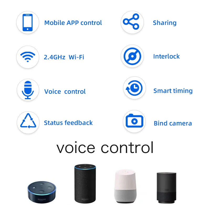 Вам следует добавить этот контроллер гаражных ворот для работы с приложением tuyasmart или smartlife и привязать его к Amazon Alexa или Google Assistant для обеспечения голосового управления. У нас есть защита голосового кода, когда вы открываете гаражную дверь.