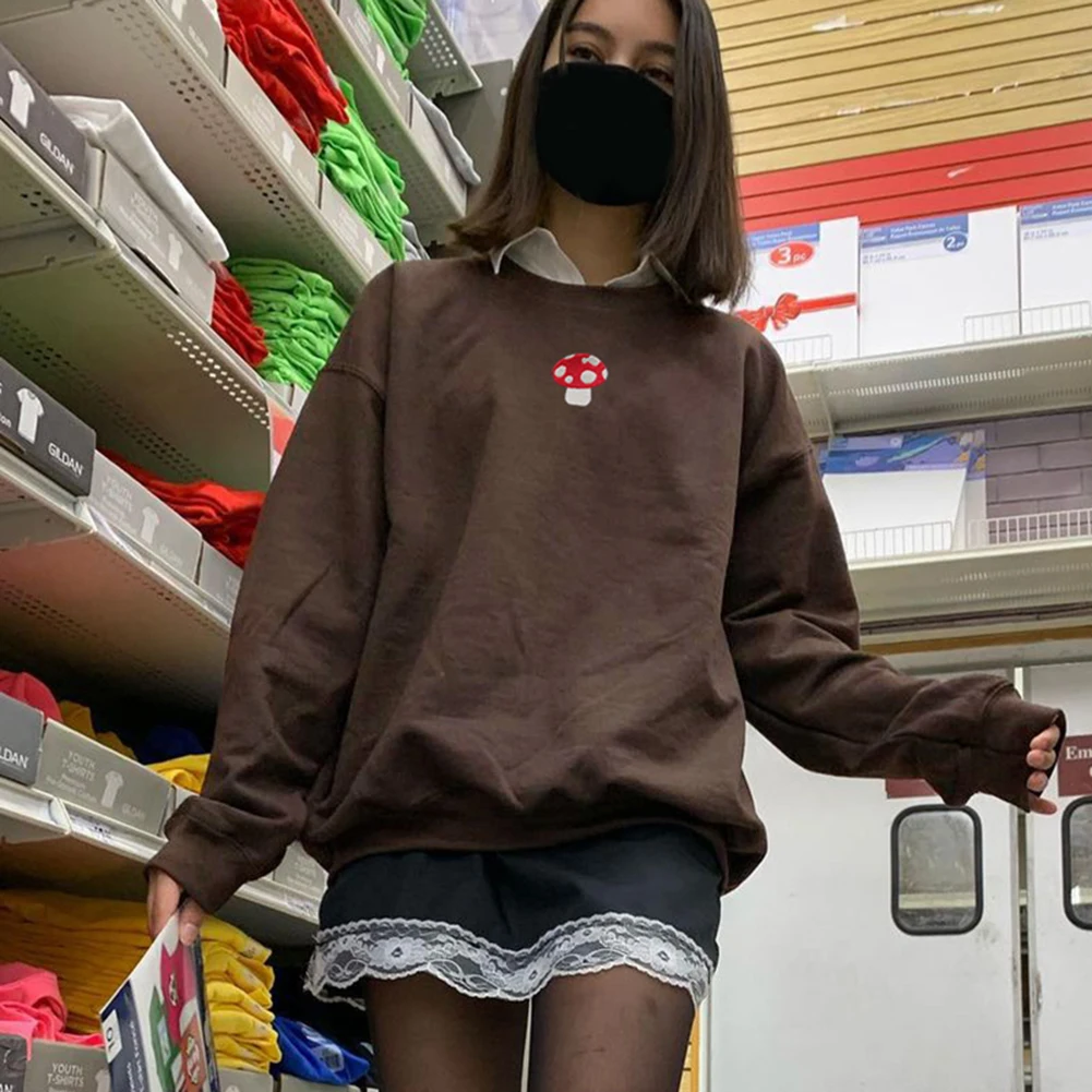 Женский винтажный свитшот с длинным рукавом, с круглым вырезом