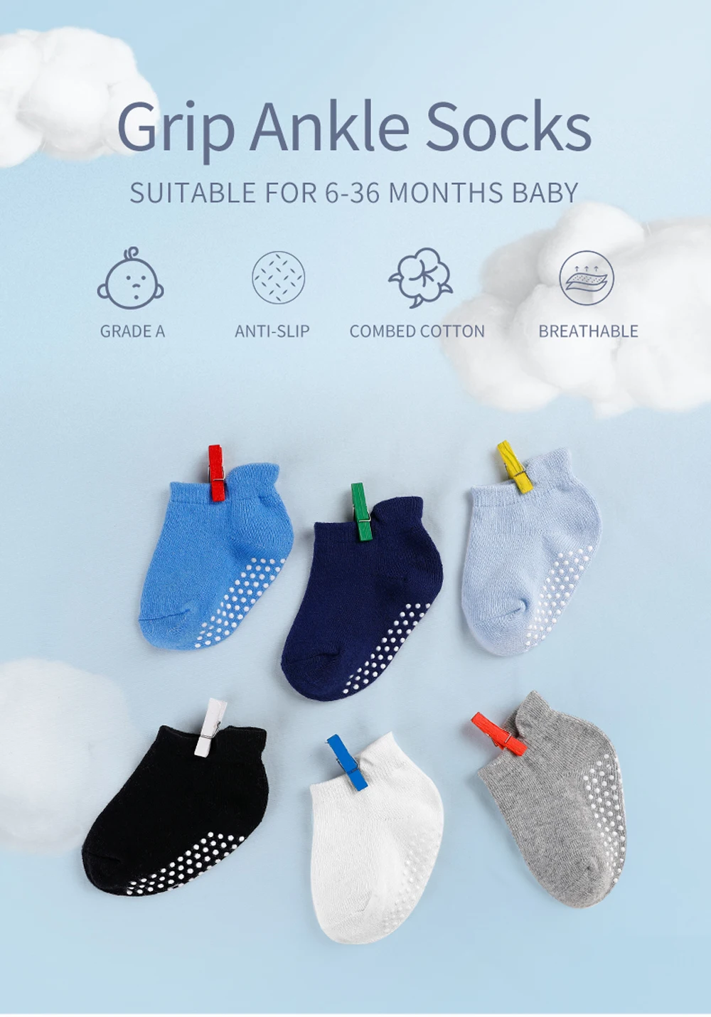 Детские носки s 100% органического хлопка нескользящие носки для мальчиков и девочек, 6 парлот противоскольжения Детские носки для малышей в возрасте от 6 до 36 месяцев