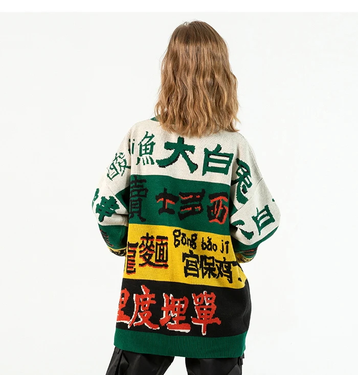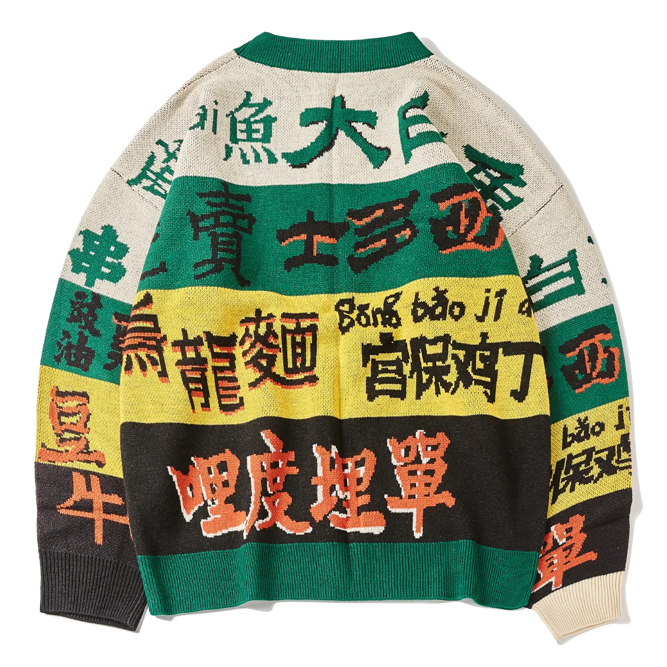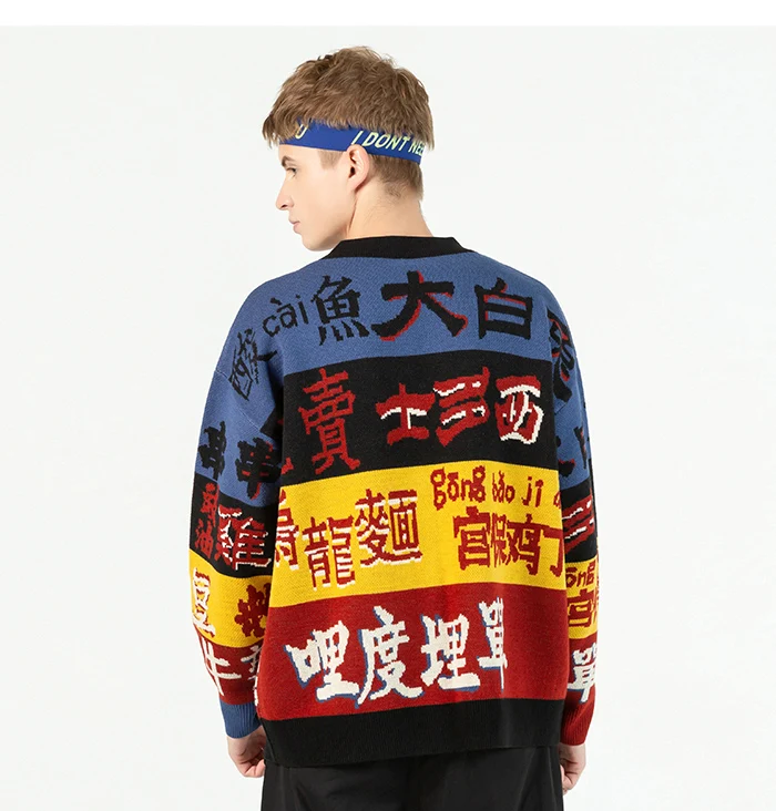 Свитер мужской оверсайз в стиле Харадзюку, трикотажный пуловер в стиле колор блок, уличная одежда в стиле хип-хоп, ретро, Осень-зима 2021