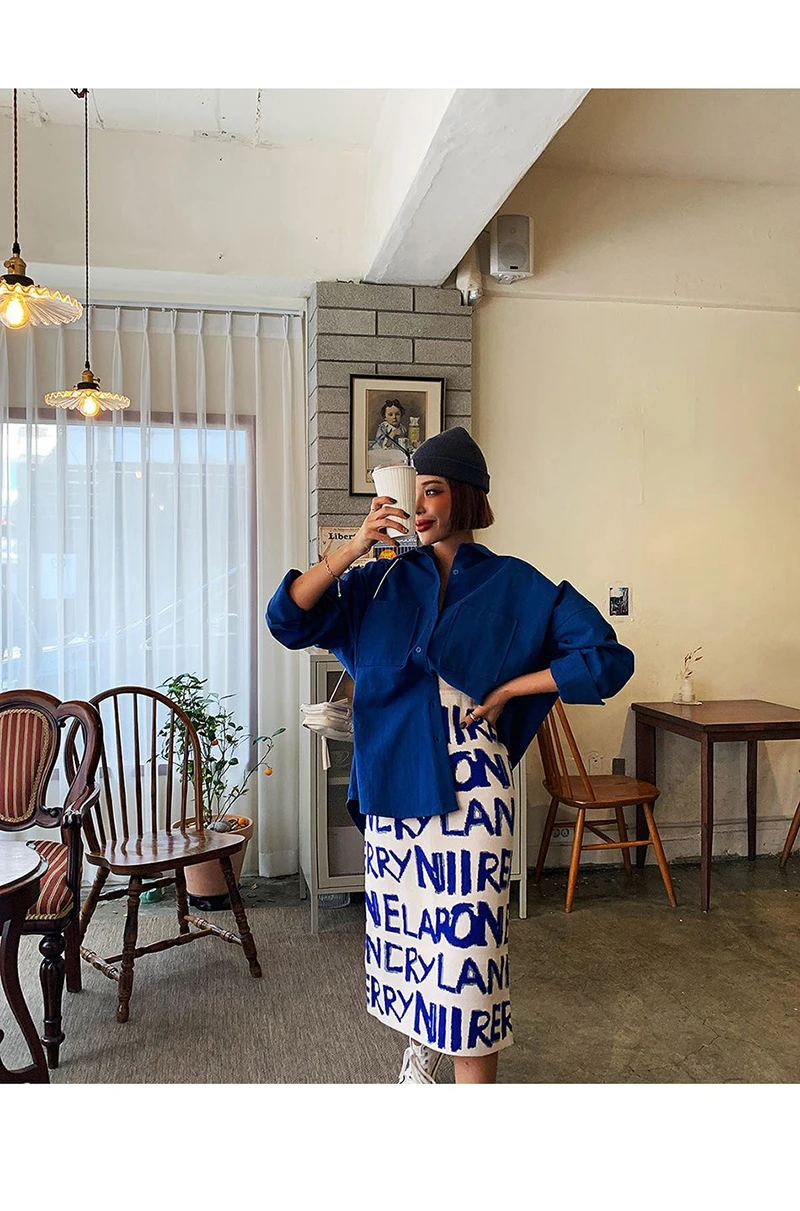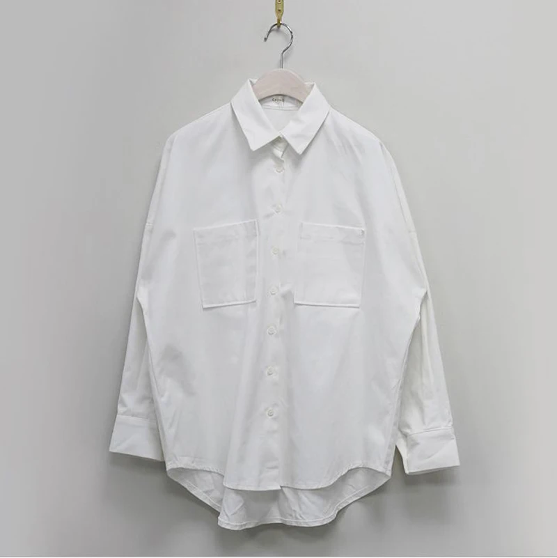 Рубашка женская однотонная с двумя карманами, повседневная однотонная хлопковая блузка свободного покроя с длинным рукавом, большие размеры, весна 12810