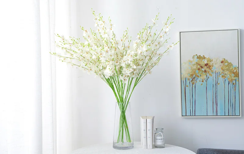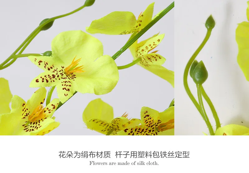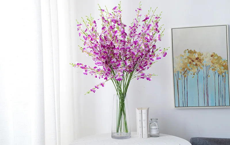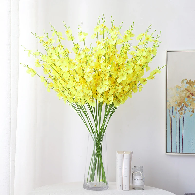 5 вилок, искусственные цветы, желтые танцующие орхидеи, вазы для свадьбы, украшение для дома, букет фаленопсиса, шелк, Рождество