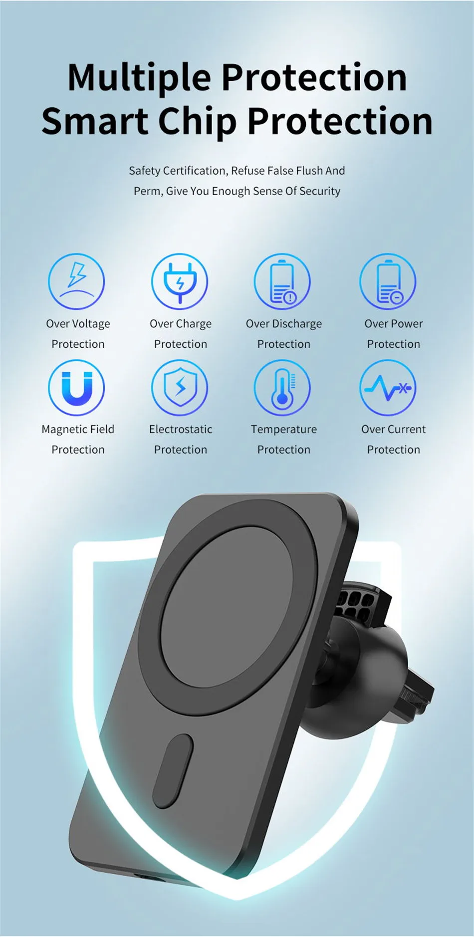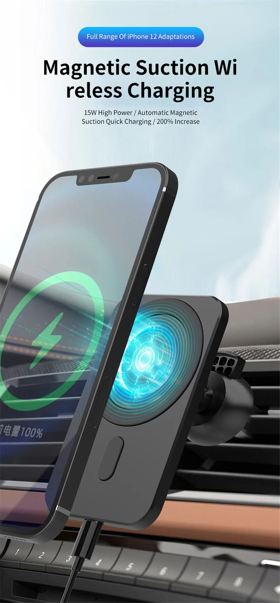 USLION 15 Вт магнитное беспроводное автомобильное зарядное устройство Qi крепление с вентиляционным отверстием для iPhone 12 Pro Max PD 30 Вт Быстрая зарядка Автомобильный держатель для телефона