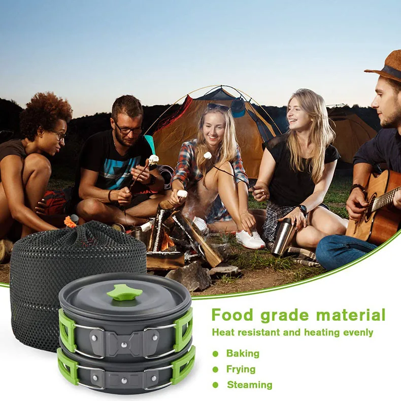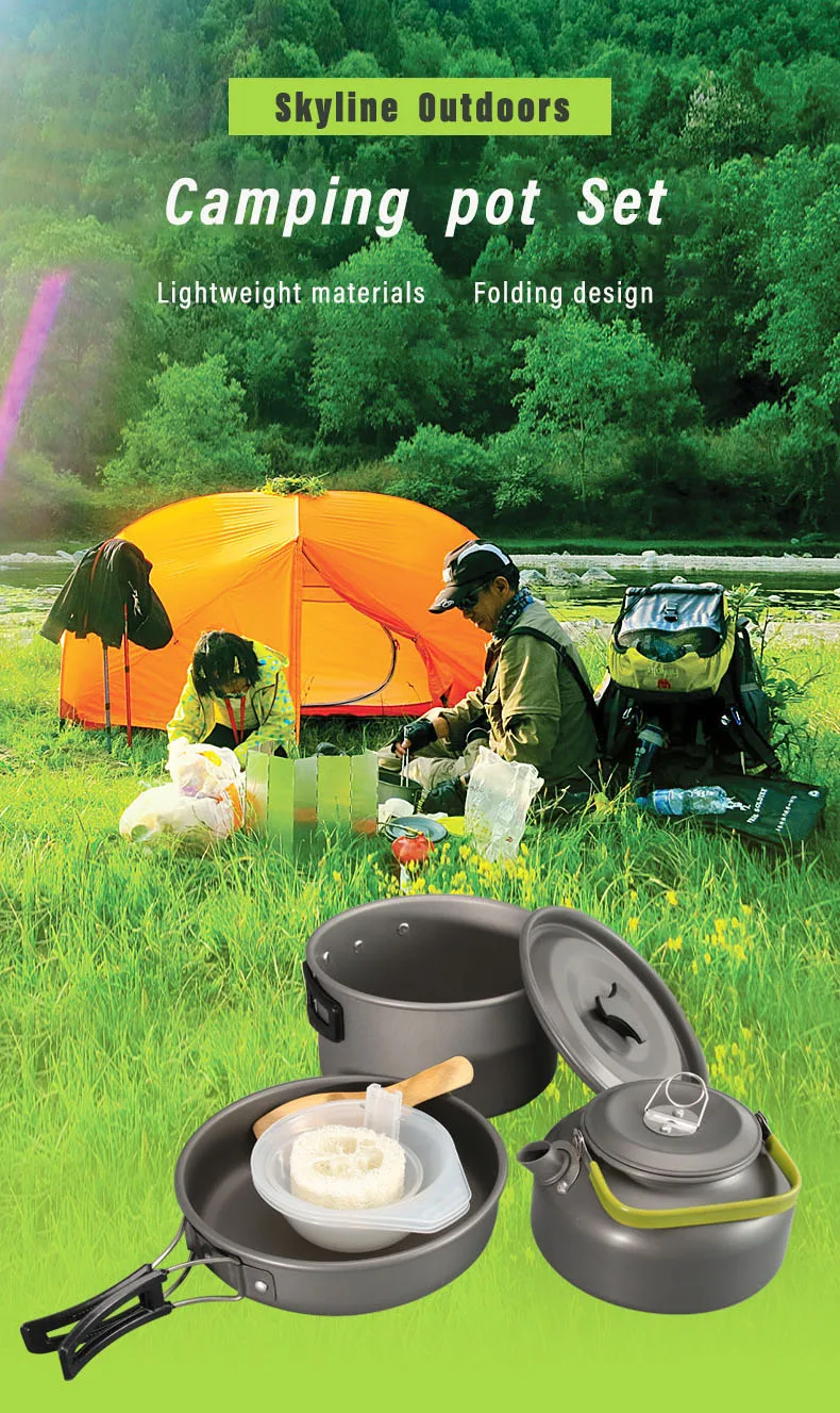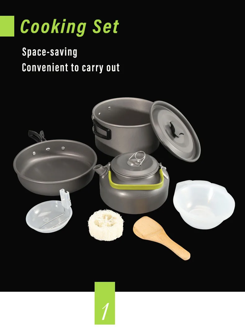 Набор алюминиевой посуды для кемпинга, набор для готовки на открытом воздухе, походная посуда, Туристическое оборудование, чайник, сковорода, сковорода, барбекю, пикника
