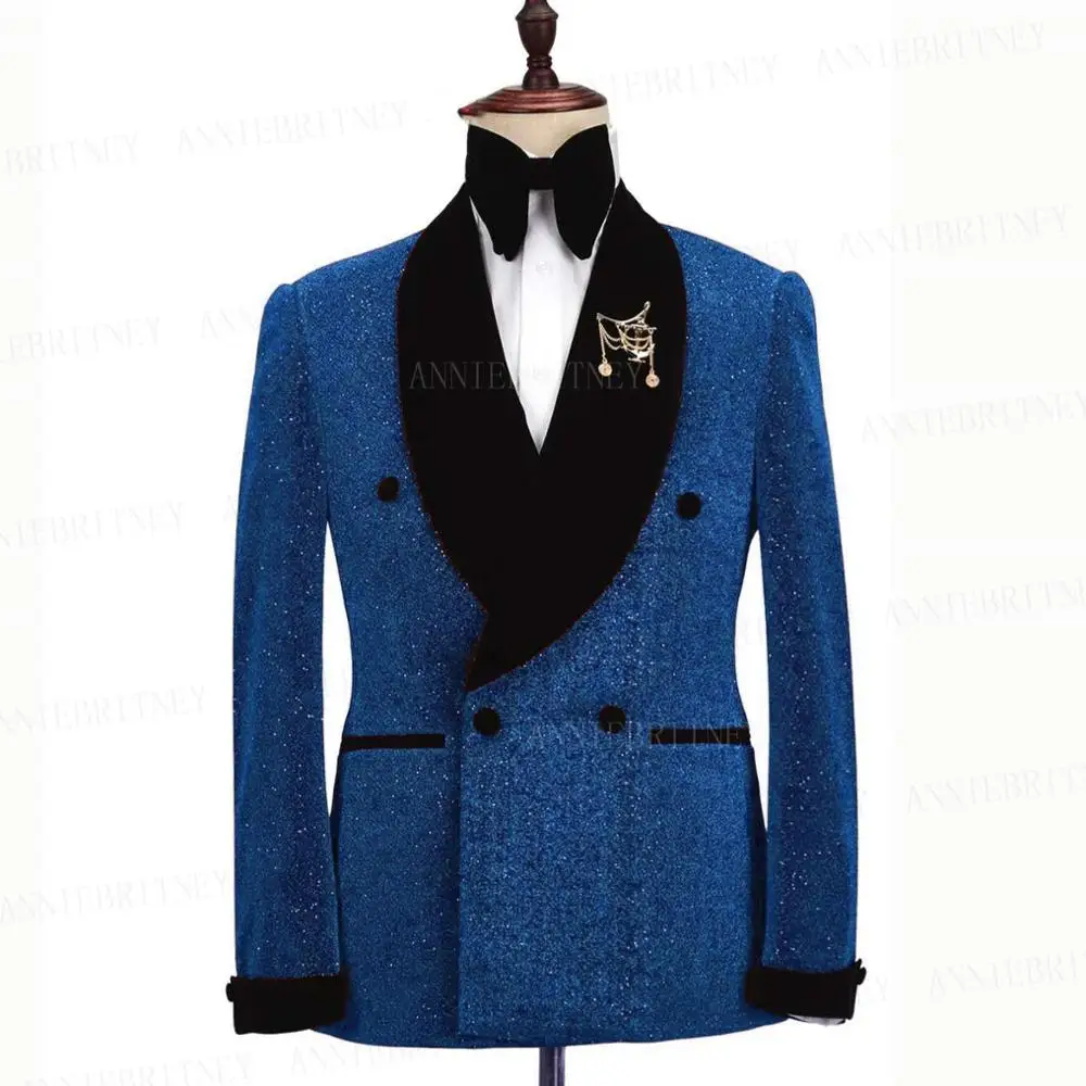 Мужской двубортный блестящий костюм, индивидуальный Модный свадебный костюм для жениха и выпускного вечера, смокинг, певец вечерние праздничный сценический блейзер с брюками, комплект из 2 предметов