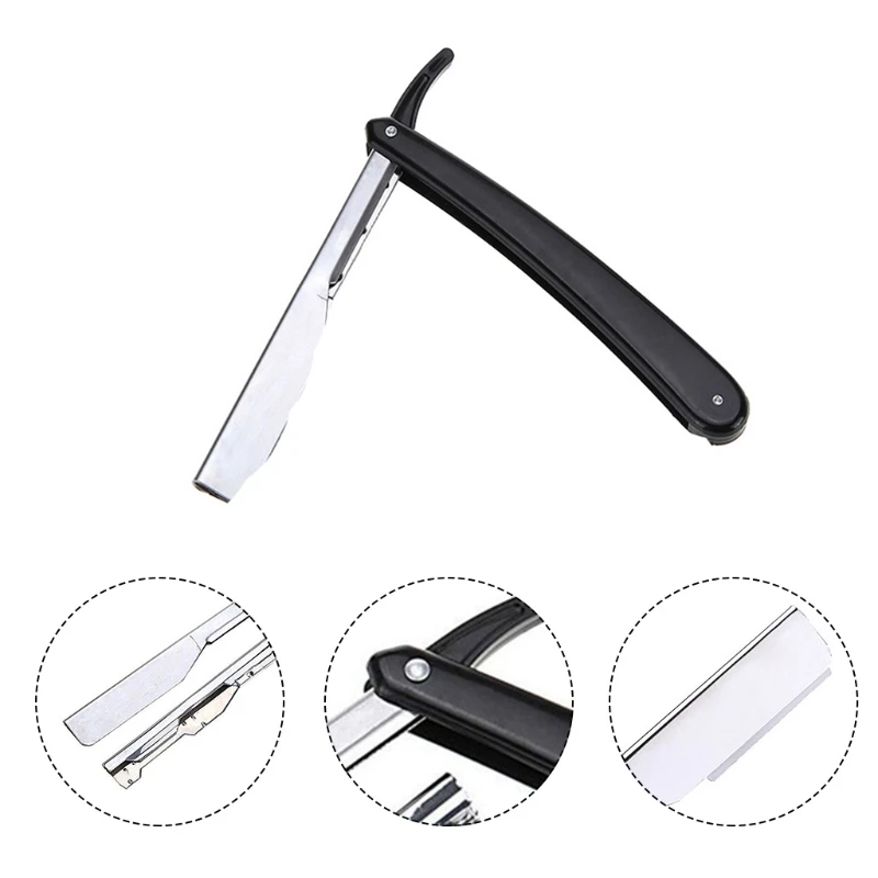 Мужская складная бритва с прямыми краями и пластиковой ручкой, винтажный салонный парикмахерский ручной бритвенный станок для бороды с держателем без лезвия