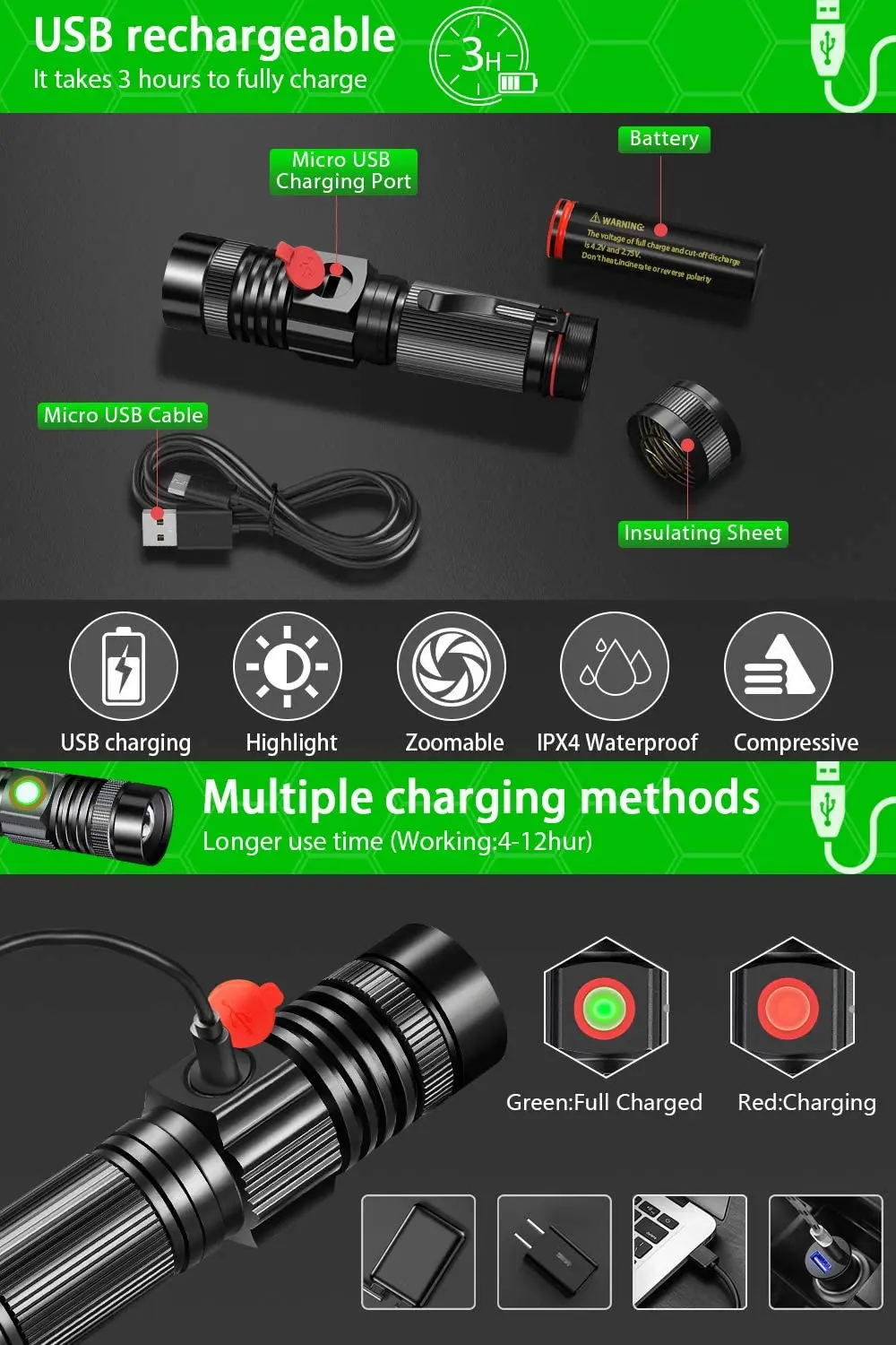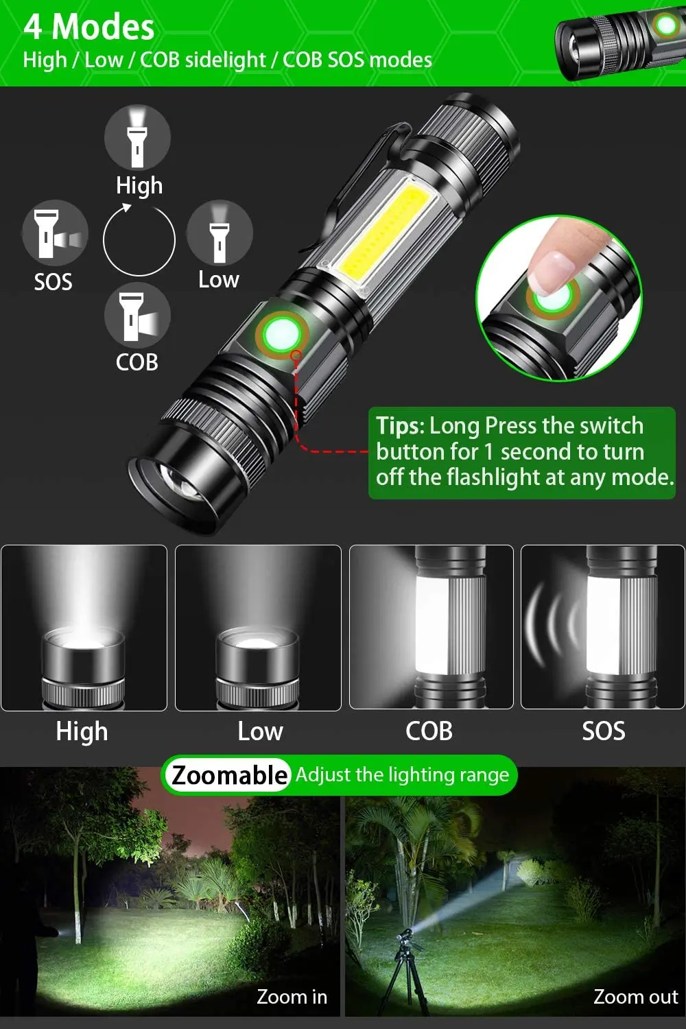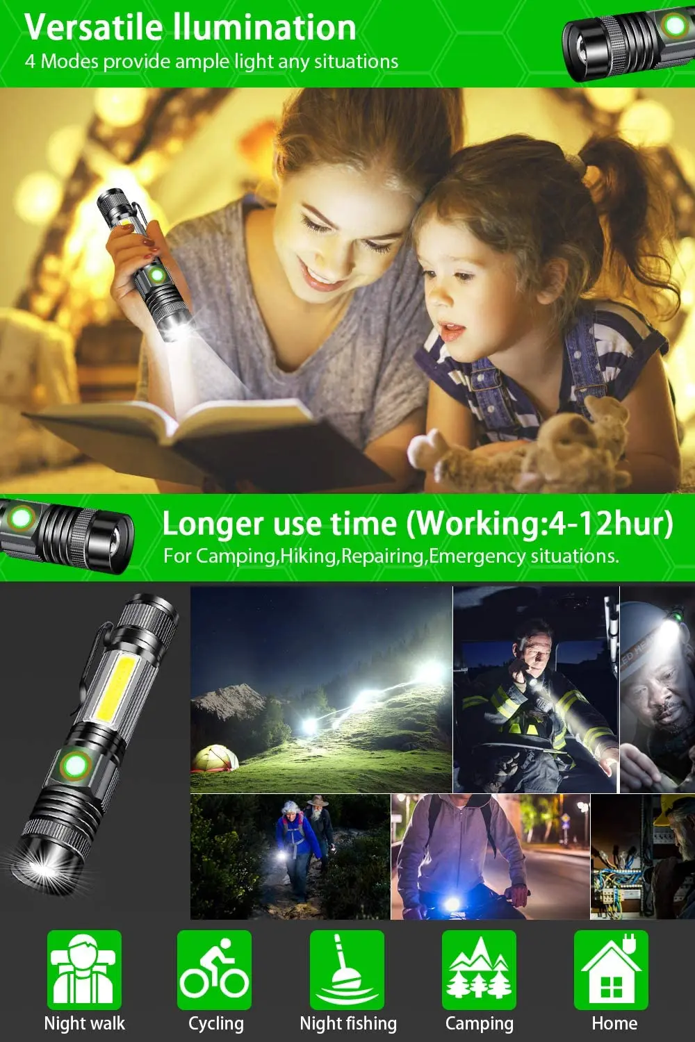 Светодиодный тактический перезаряжаемый Магнитный фонарь, супер яркий светодиодный фонарь, масштабируемый с Cob босветильник светом, светодиодный фонарь, аварийный фонарь