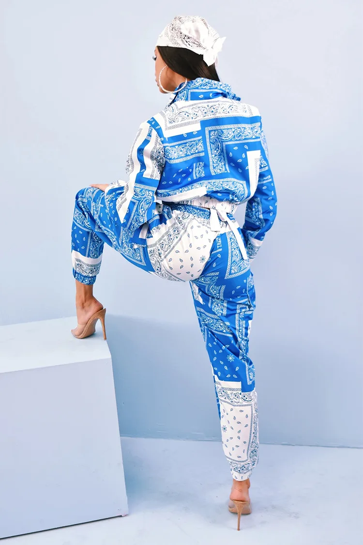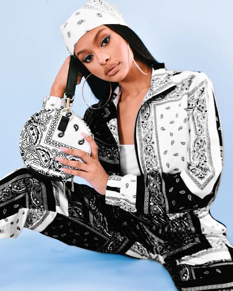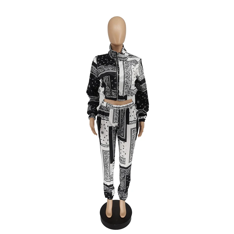 Бандана с принтом, комплект из двух предметов, повседневная короткая куртка на молнии с длинным рукавом и принтом пейсли, штаны для бега, уличный спортивный костюм