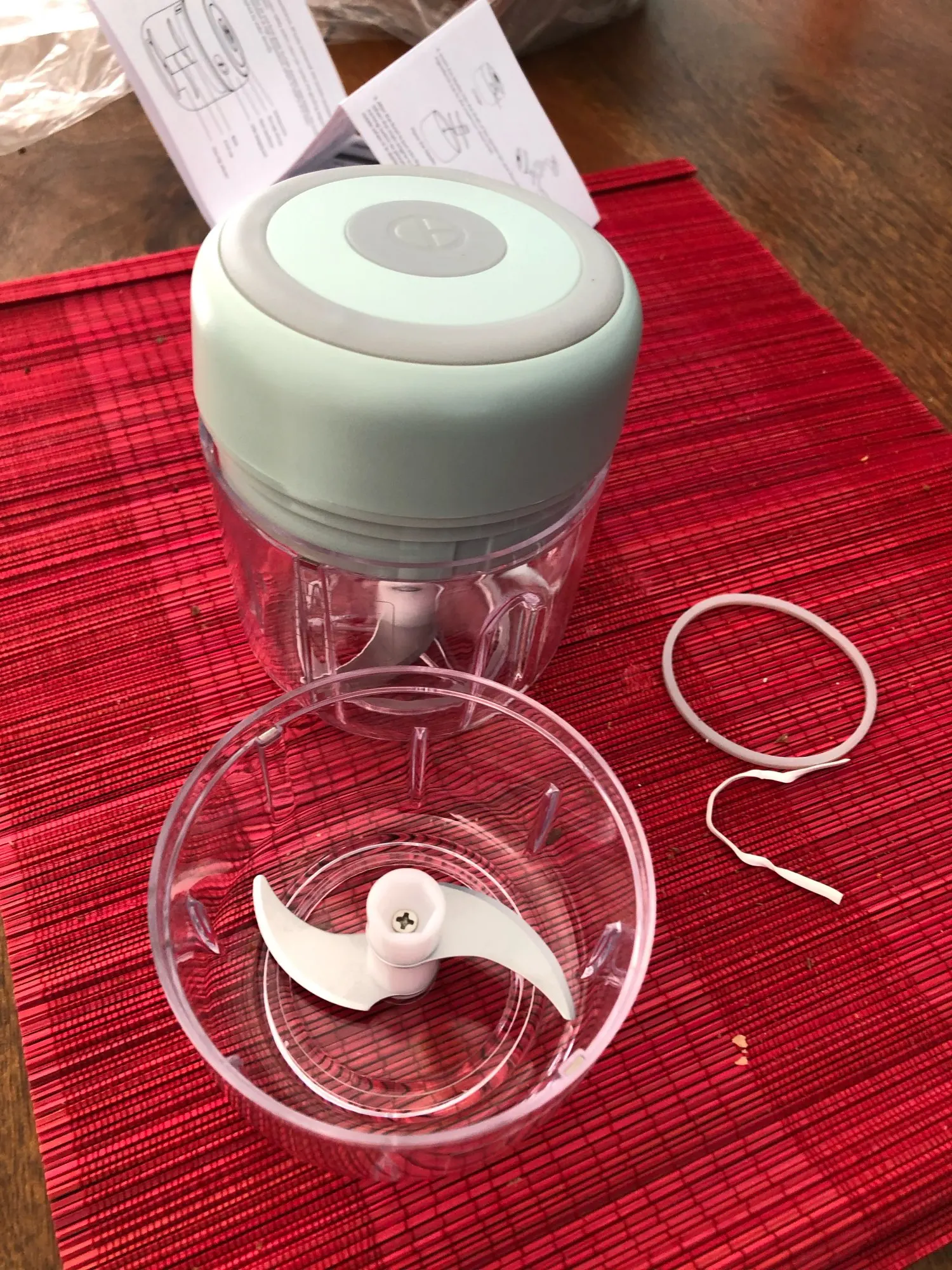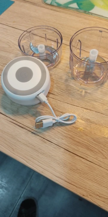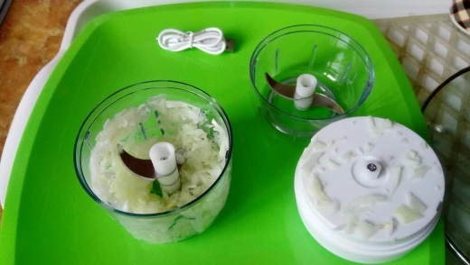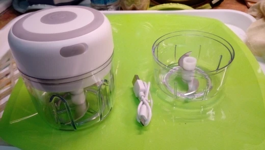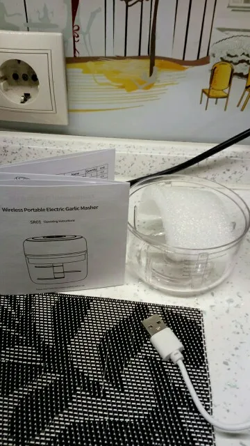 Отправили через несколько дней после заказа. Доставка до Омска 15-16 дней через DPD. Упаковано хорошо, но коробка немного помятая. Измельчитель выглядит, как на картинке. Сборка качественная, без зазоров. Верхняя часть конструкции прорезиненна. Дно ёмкости тоже с резиновой прокладкой, чтобы не скользила. Управление происходит одной кнопкой сверху. Если убрать ёмкость, то кнопка автоматически блокируется. Измельчитель на удивление мощный. На первой фотке видно его работу. На каждый овощ уходило по 20-30 секунд. Главное не забыть ёмкость под завязку. Так же рекомендую сразу мыть его после использования. Заряжается от кабеля micro USB, который идёт в комплекте. Водонепроницаемость присутствует. Спокойно мою его под струёй воды и всё нормально. После мытья один раз даже разобрал его и проверил наличие воды. Вода внутри отсутствовала. Магазин рекомендую.