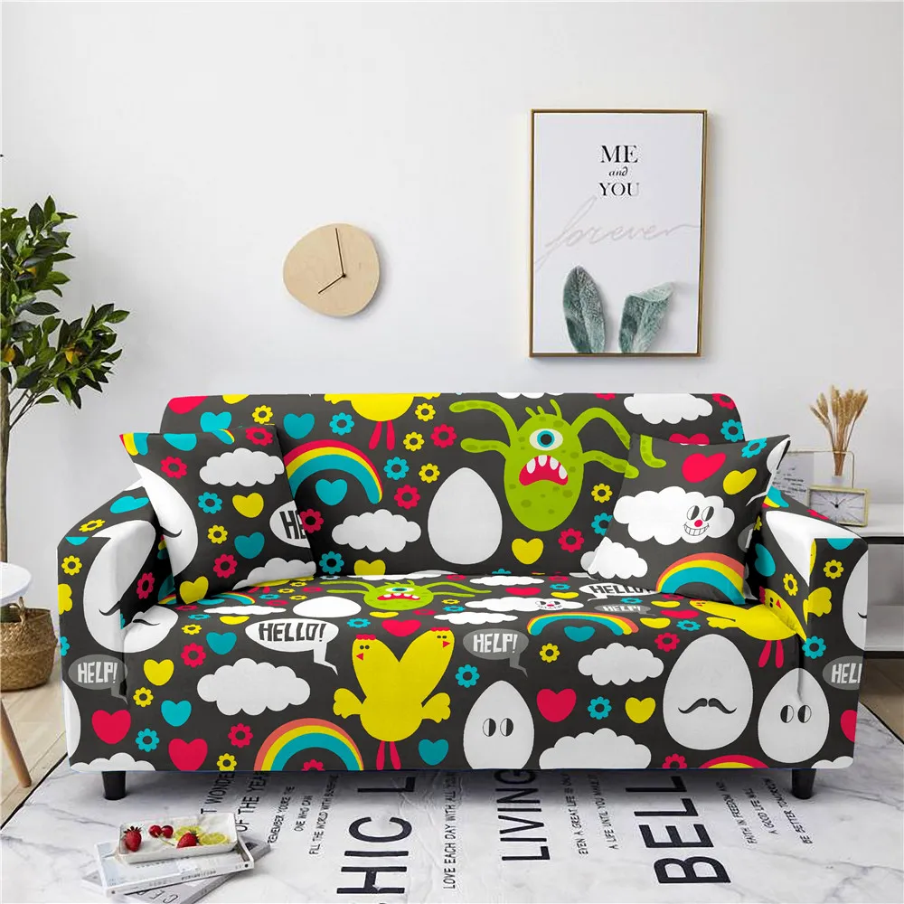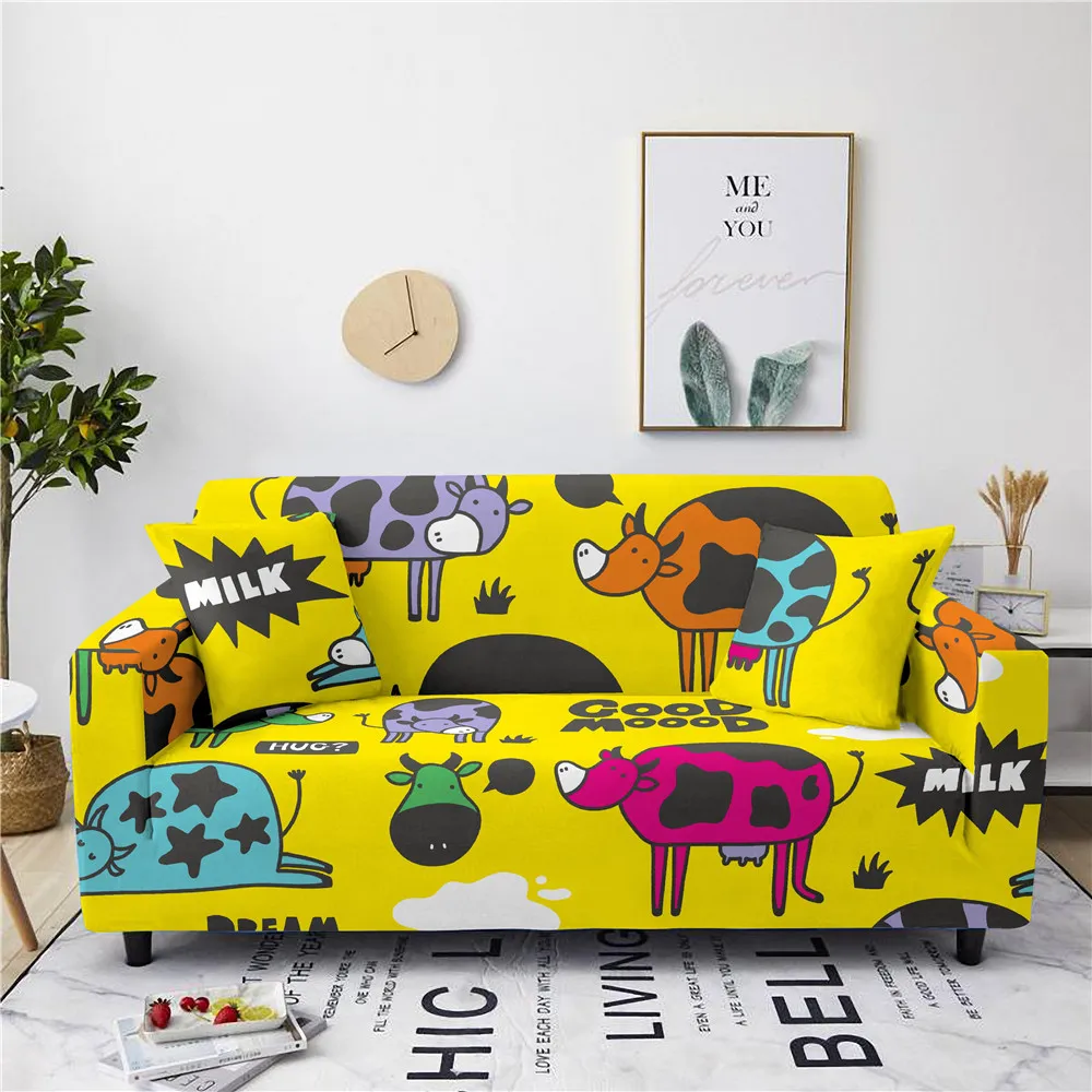 Чехол для дивана с забавным мультяшным изображением милого монстра для гостиной Эластичный чехол для дивана с изображением животного коровы и кота секционный чехол для угловой кушетки Набор чехлов