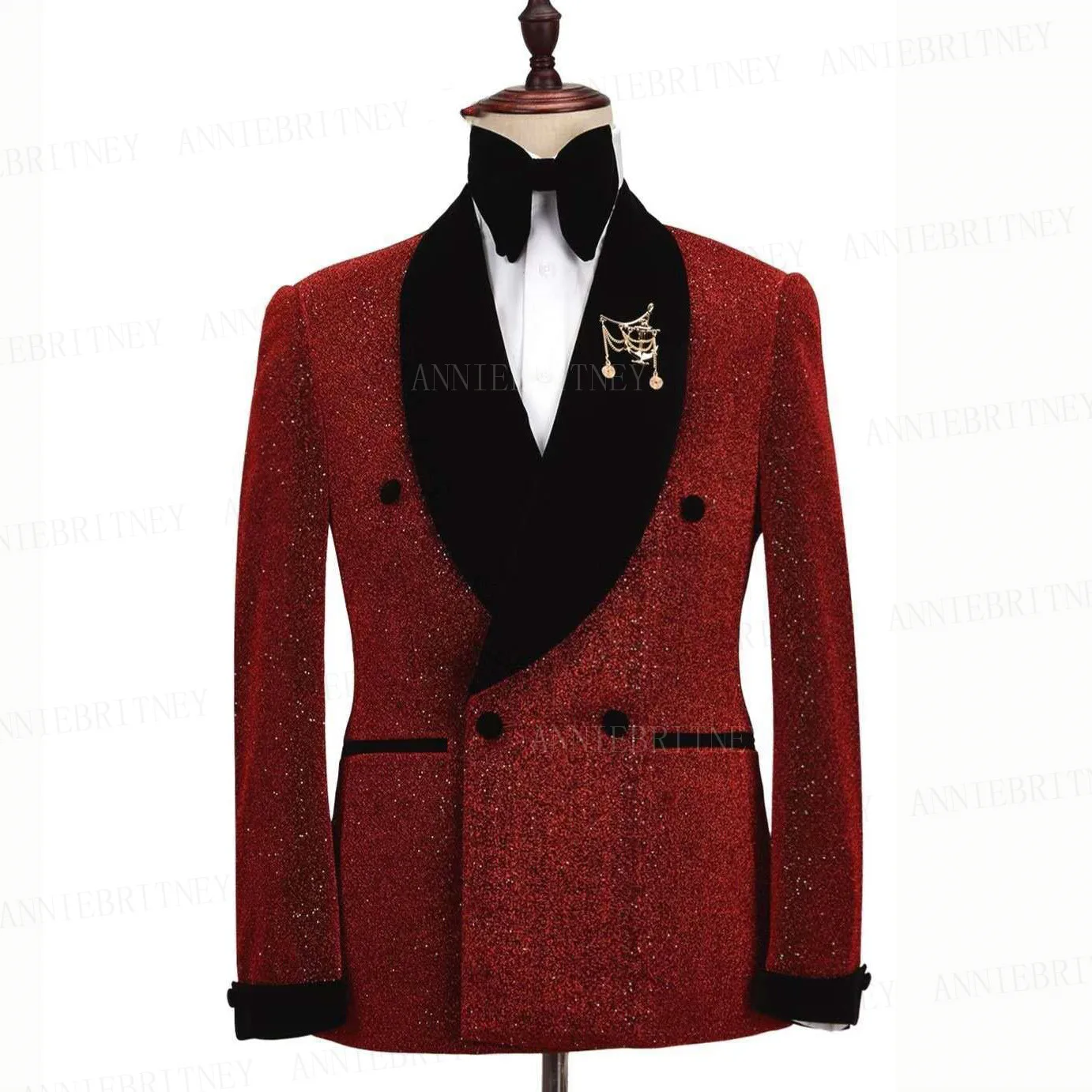 Двубортный блестящий красный костюм для мужчин, индивидуальный поши...
