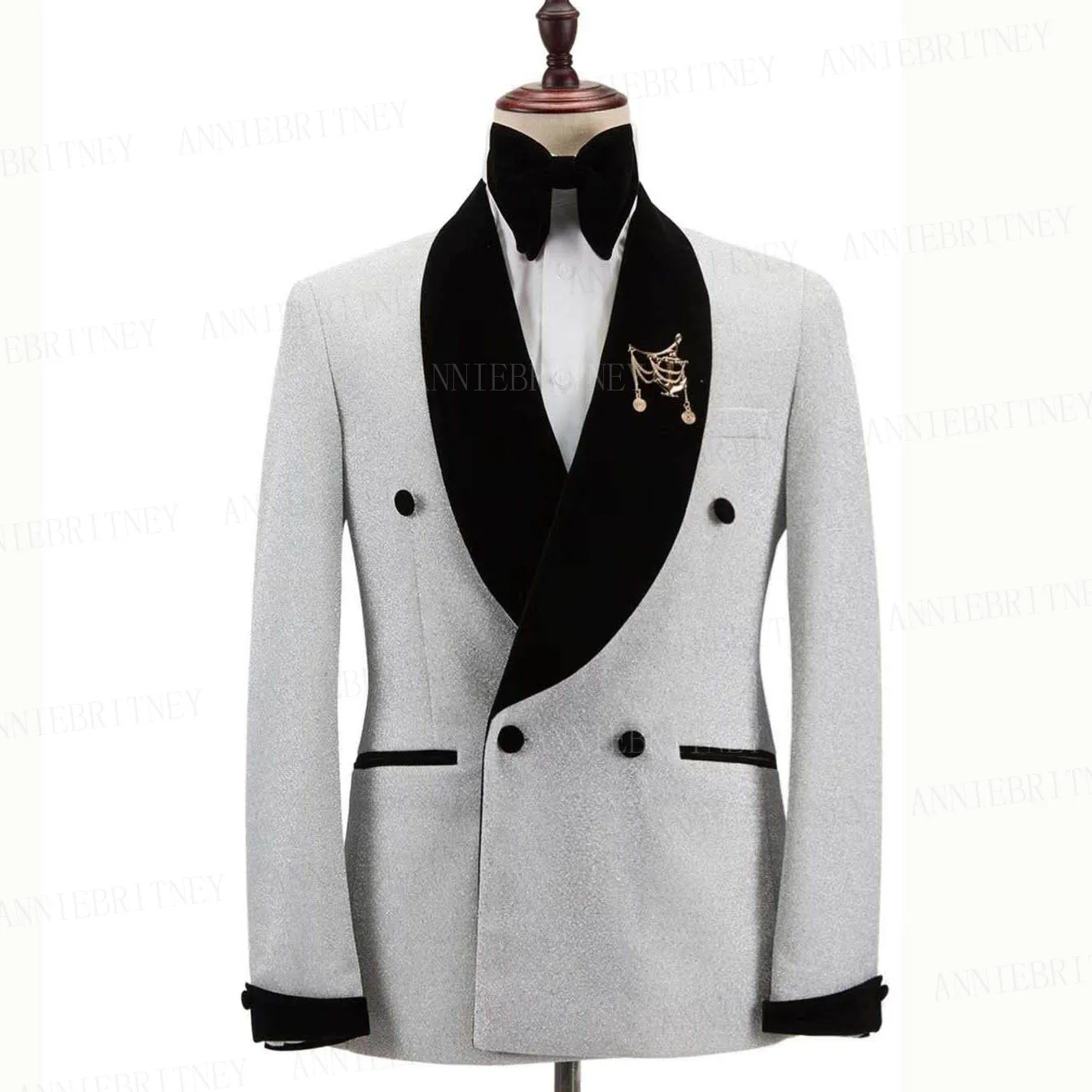 Мужской двубортный блестящий костюм, индивидуальный Модный свадебны...