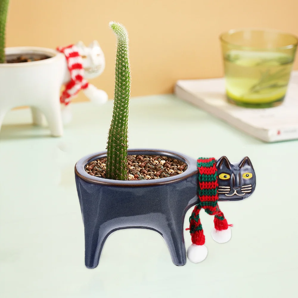 Цветочный горшок с милым мультяшным рисунком, горшок для растений, садовые аксессуары, горшок для кошек, керамический контейнер для посадки, украшение