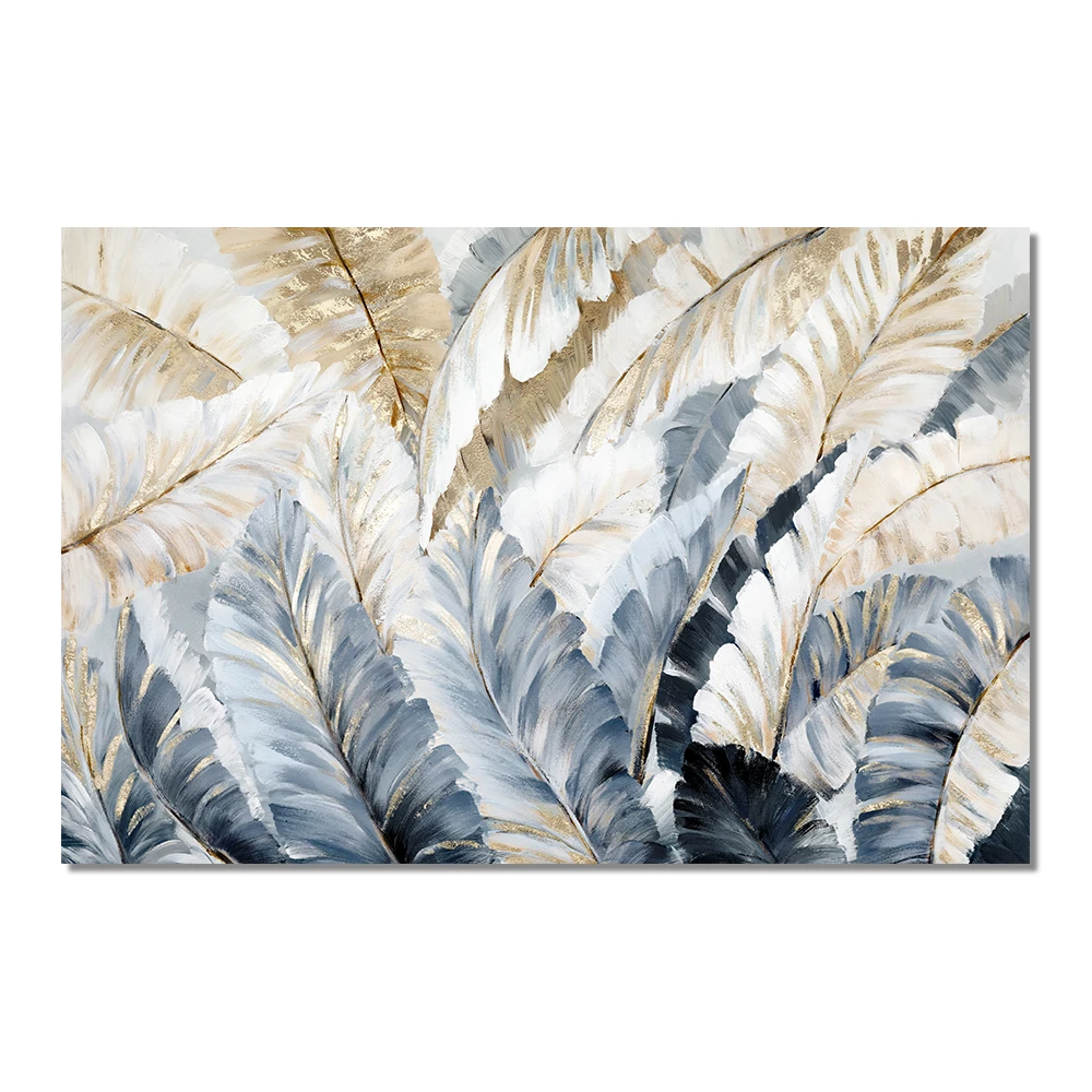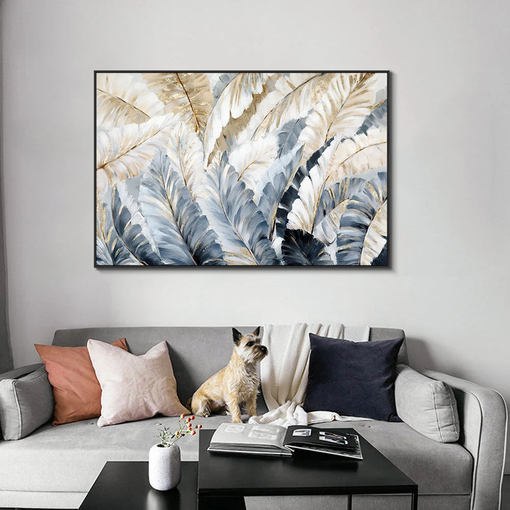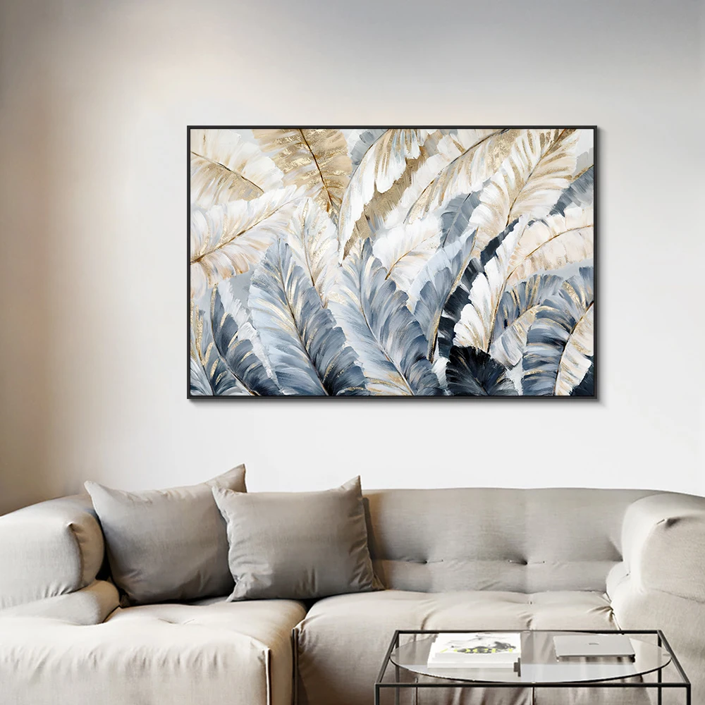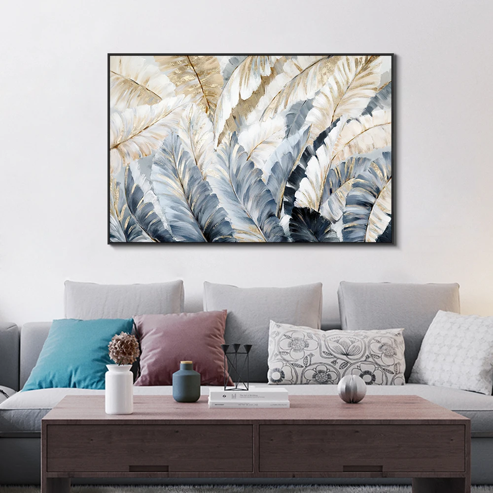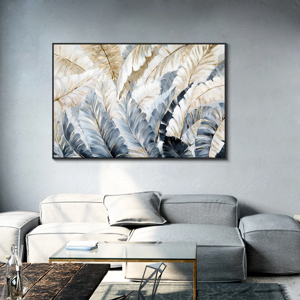 Печать на холсте, абстрактная живопись, золотые и серые листья, настенный художественный цветной плакат, декоративная картина для гостиной, домашний декор, Куадрос