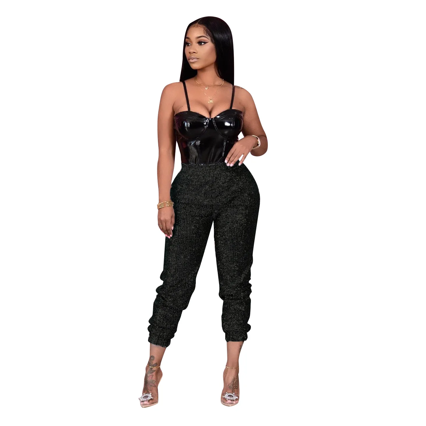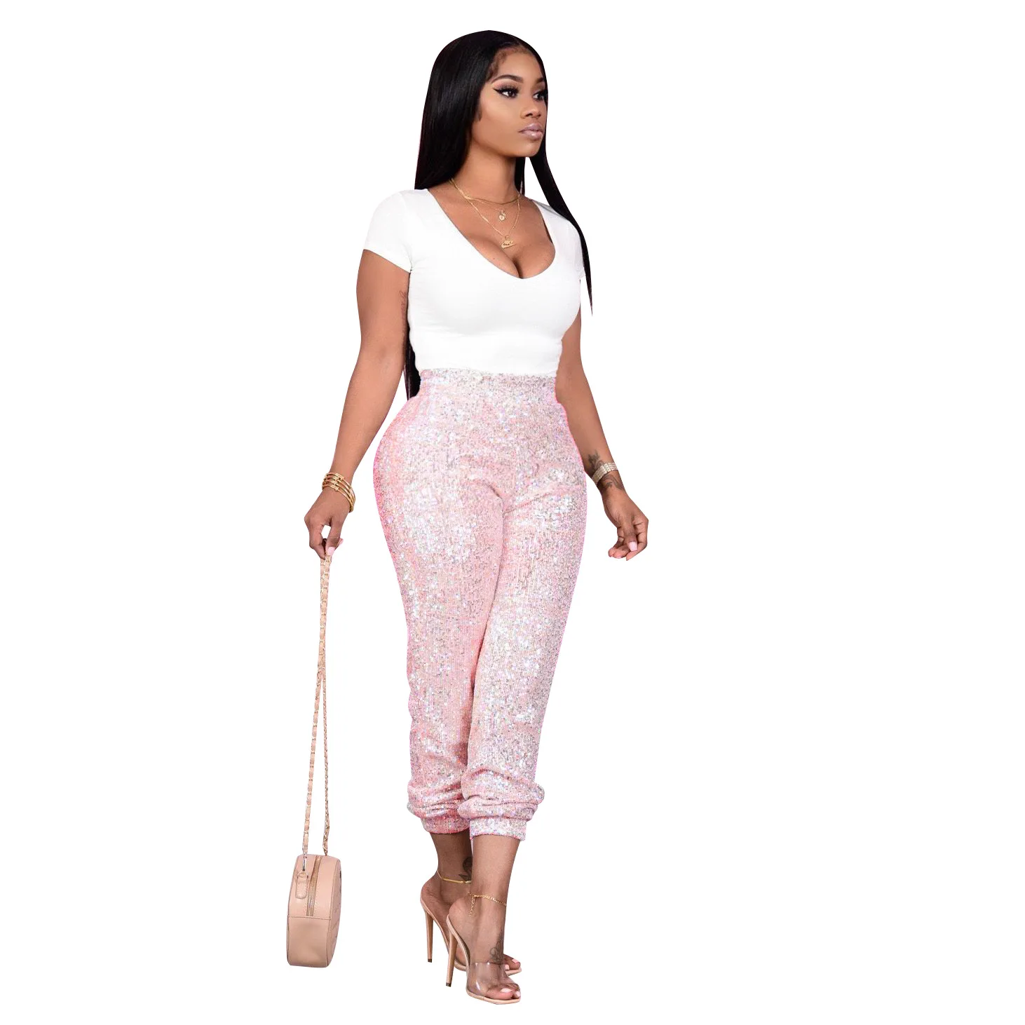 Женские Беговые брюки с блестками, однотонные простые Стильные облегающие брюки с эластичным поясом в стиле хип-хоп, клубная одежда