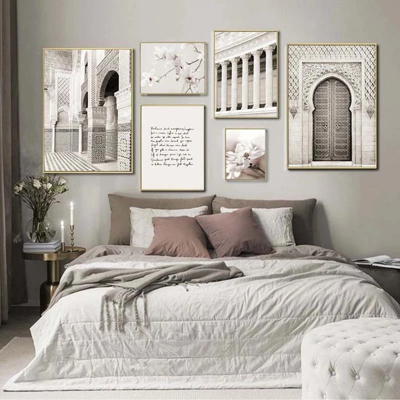 Арабское, Марокканское здание, картина, римская колонна, цветок, настенное искусство, мусульманская религия, печатный плакат, пейзаж, картины, домашний декор
