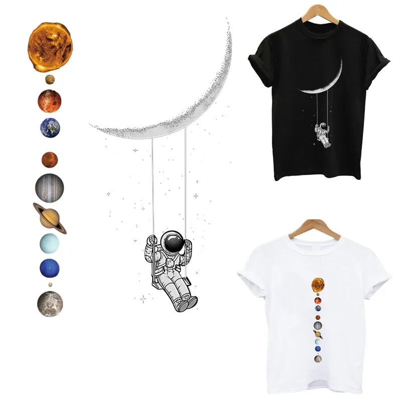Термотрансферы для одежды, аппликации на одежду с солнечной системой, планет, теплопередающие наклейки, термочувствительные нашивки, топы