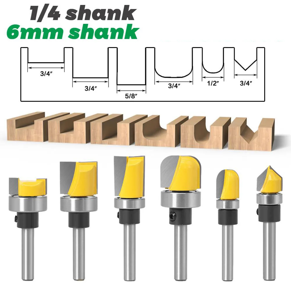 Фреза для обработки дерева, насадки 14 или 6 мм с хвостовиком, 6 шт.