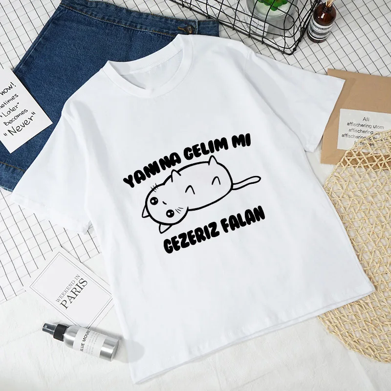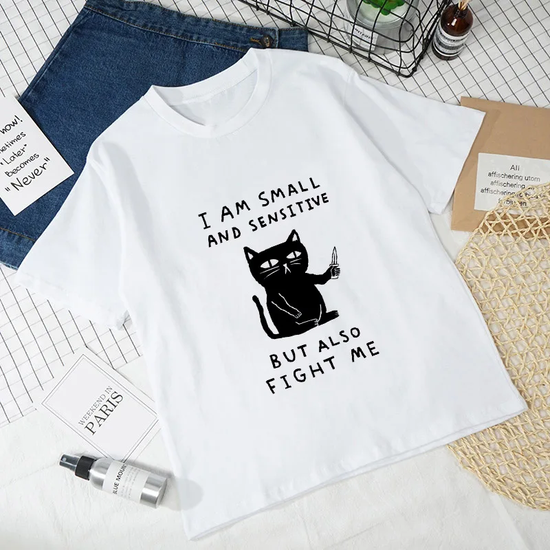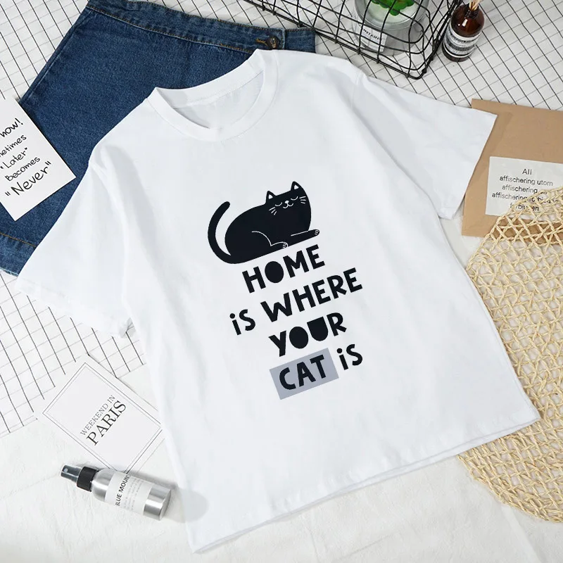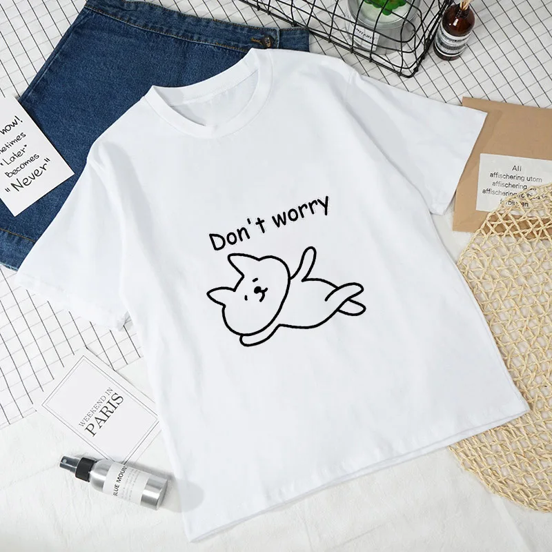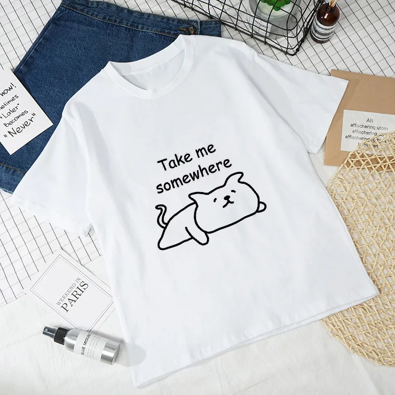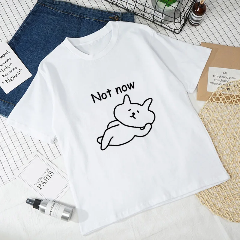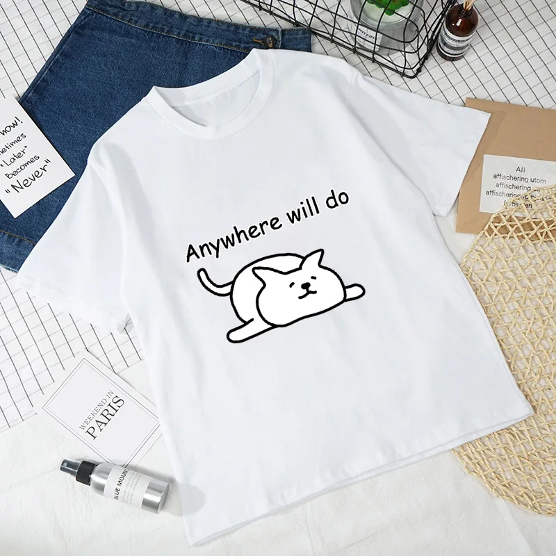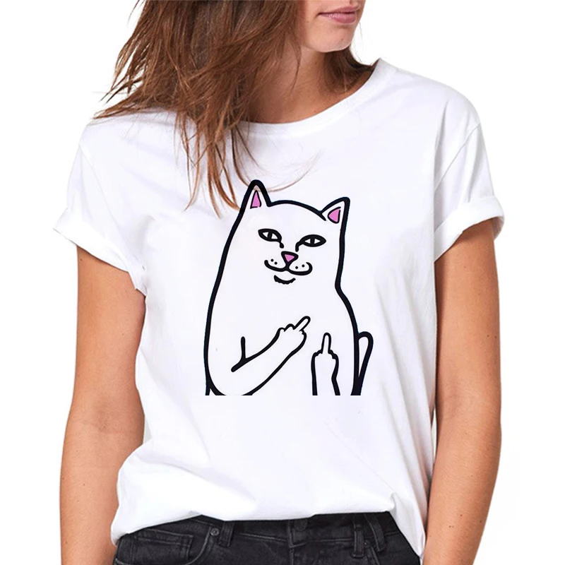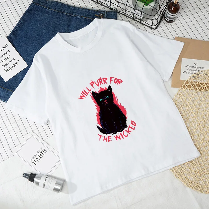 Женские футболки с рисунком кошки, Белые Повседневные футболки с коротким рукавом в стиле Харадзюку, 2021