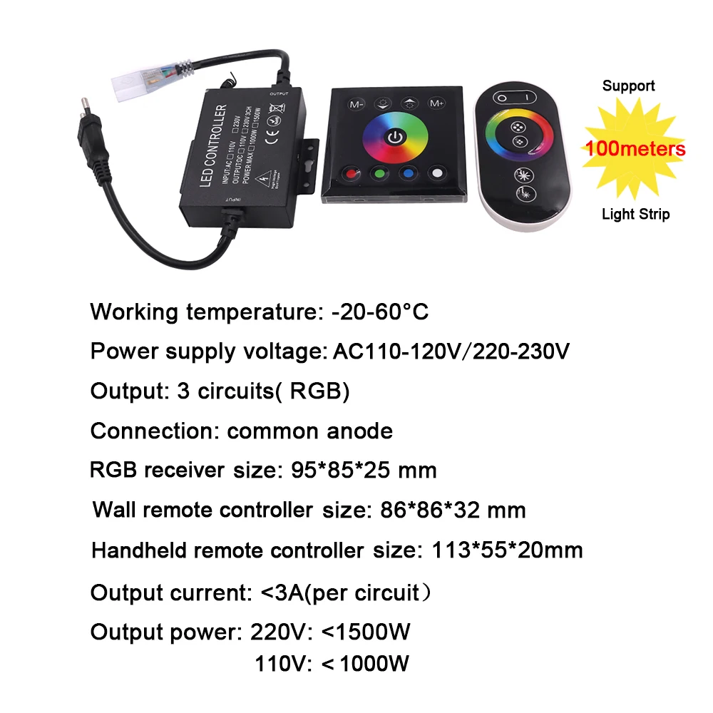 Неосветильник ная лента 220 В, RGB пульт управления с двойным сенсо...