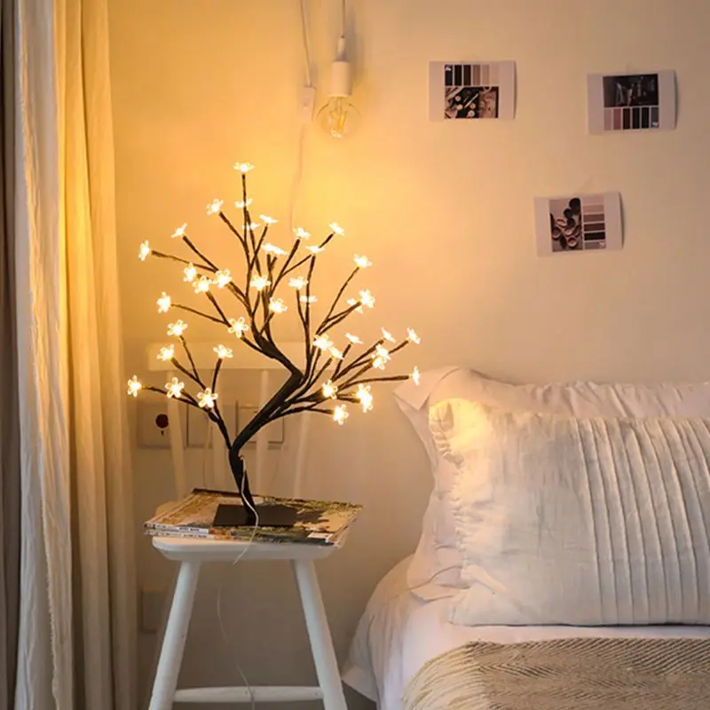 Вишневый цвет Настольный светильник в виде дерева бонсаи, декоратив...