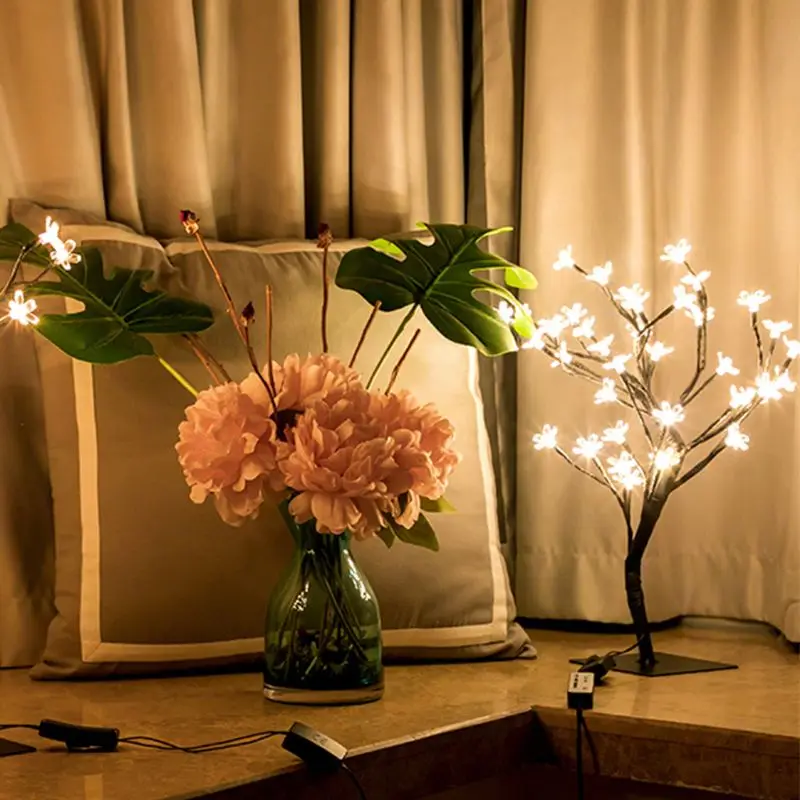 Светодиодный ная настольная лампа в виде дерева сакуры, декоративны...