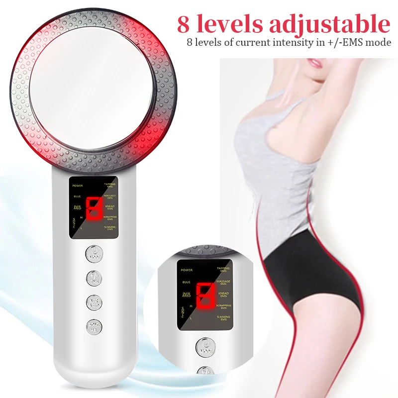 Функция: ультразвуковая вибрация, уход за кожей красного и синего цвета, поглощение жира, потребление жира, здоровая потеря веса, EMS массаж микро-тока