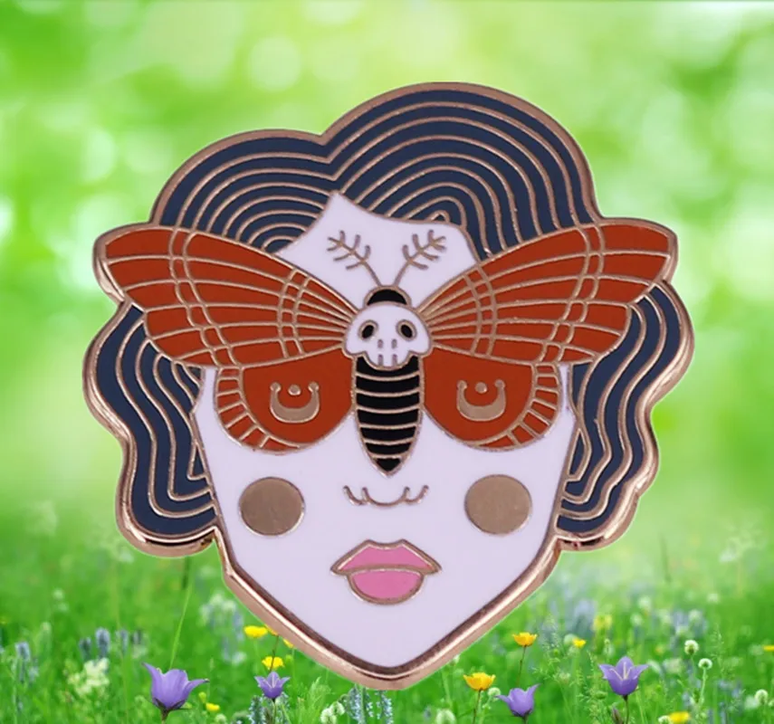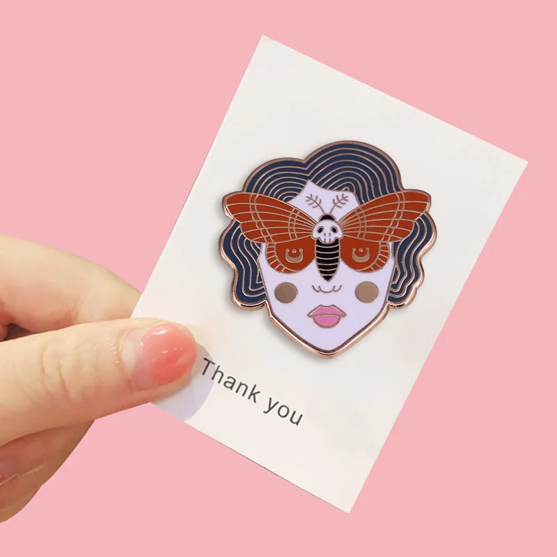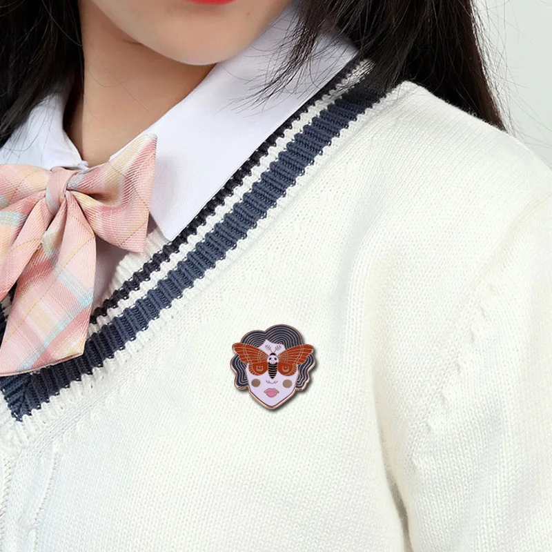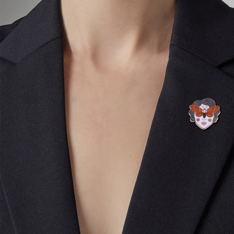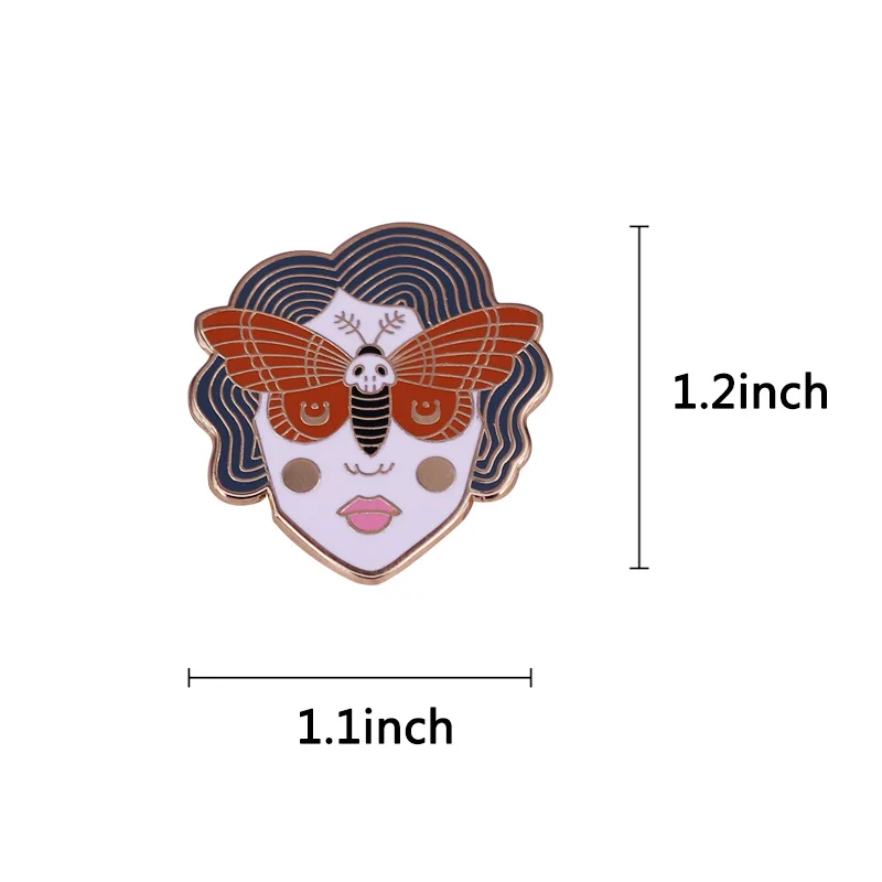Эмалированная заколка в виде головы смерти, ястреба, черепа, бабочки, полумесяца, девушки