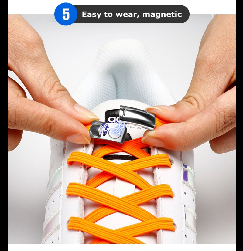 Шнурки магнитные без завязывания 1 пара, эластичные быстросъемные плоские, для кроссовок, унисекс, без завязывания