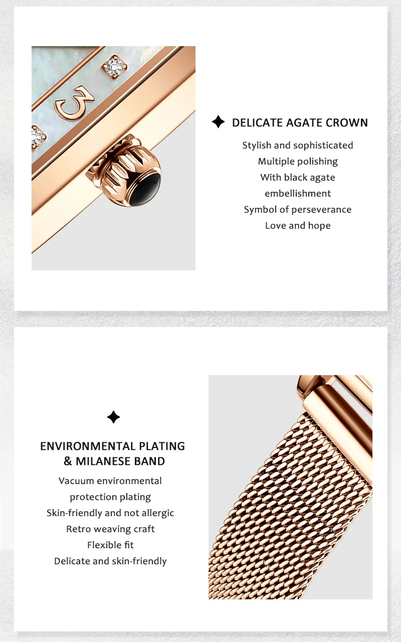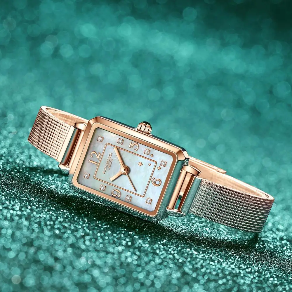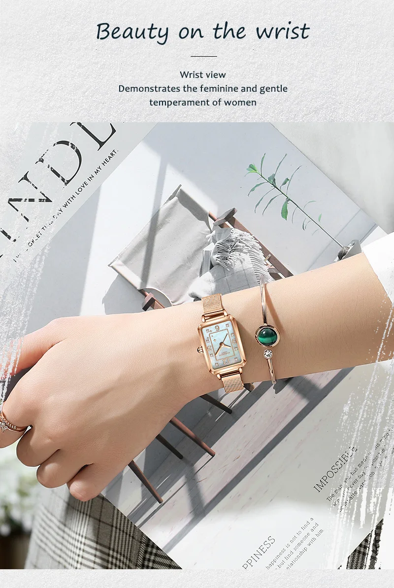 Женские кварцевые часы Matel сетчатые ленты с белым корпусом и квадратным циферблатом