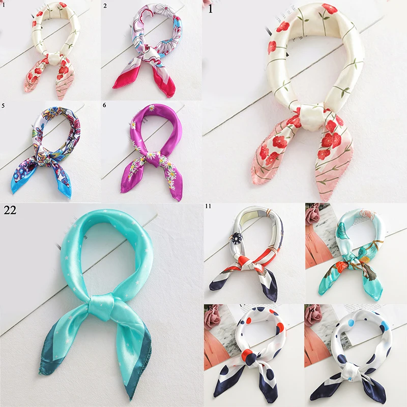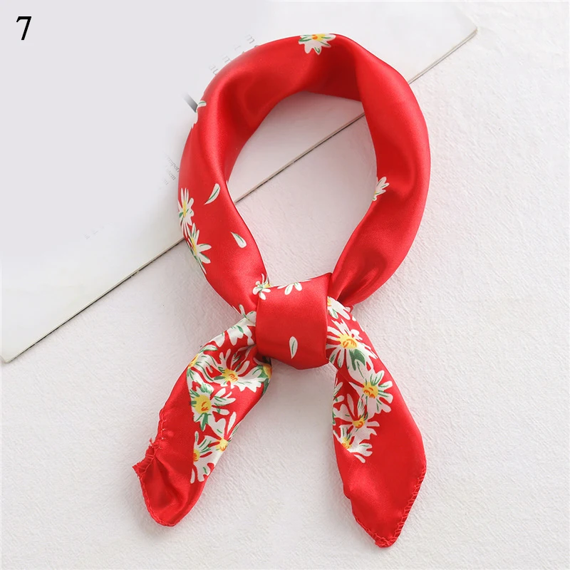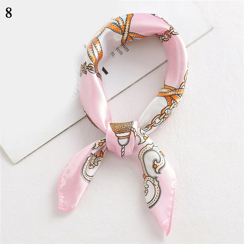 Шелковый шарф квадратной формы для женщин; Модный принт маленький шейный шарфы для офиса Женская резинка для волос платки ручной Косынка женская Бандана шаль 50*50