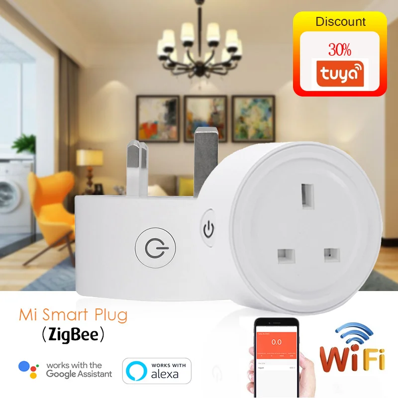 Умная розетка Wi-Fi, Британская, 10 А, Функция синхронизации, управление через приложение Tuya, работает с Alexa, Google Home