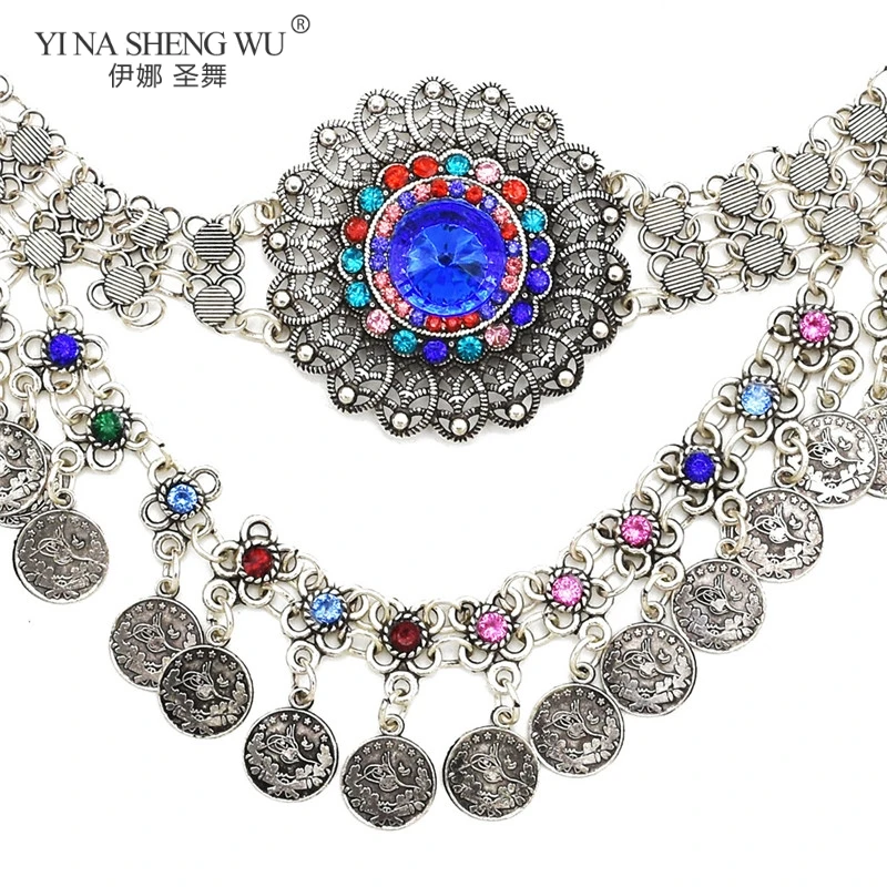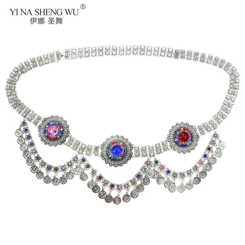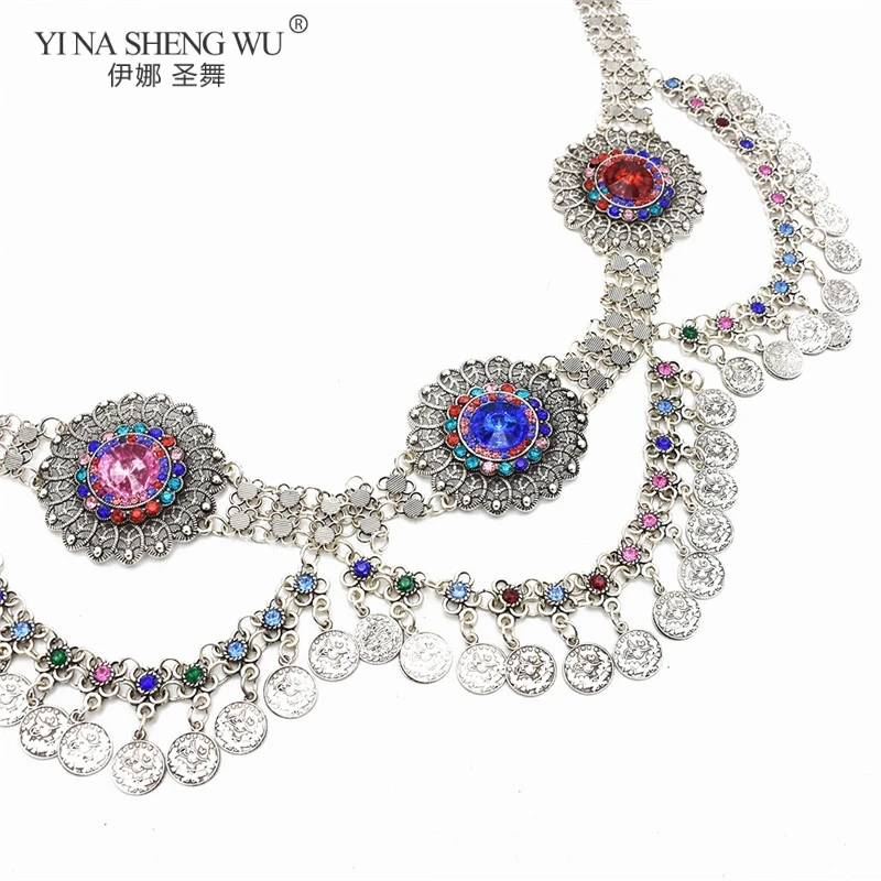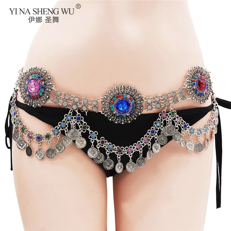 В богемном стиле Стиль цепочка на талию для танца живота, дешевая, массивные ожерелья с бриллиантами для талии цепочки для женщин турецкий Цвет Gypsy Стразы танец ювелирные изделия