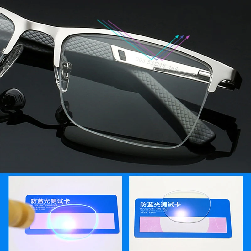 Очки для чтения 150 250 мужские, металлическая полуоправа, защита компьютера, защита от ультрафиолетового излучения, при пресбиопии, защита от усталости, с пружинной петлей