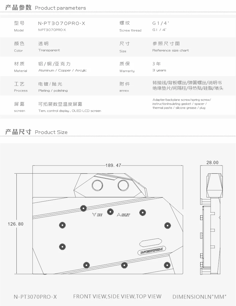 Bykski N-PT3070PRO-X, блок водяного охлаждения графического процесс...