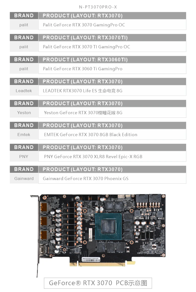 Bykski 3070 GPU Блок водяного охлаждения для Palit RTX 3070 GamingP...